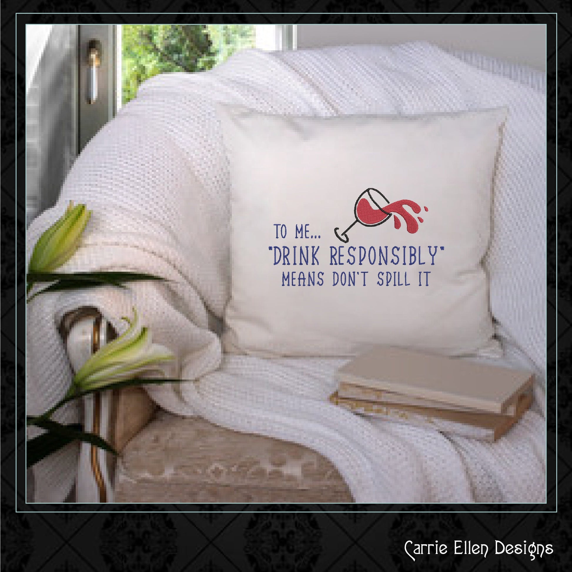 Drink Wine Responsibly Machine Embroidery Design | Funny Wine Sayings Embroidery | Humorous Quotes Design | 6 Sizes (0811)