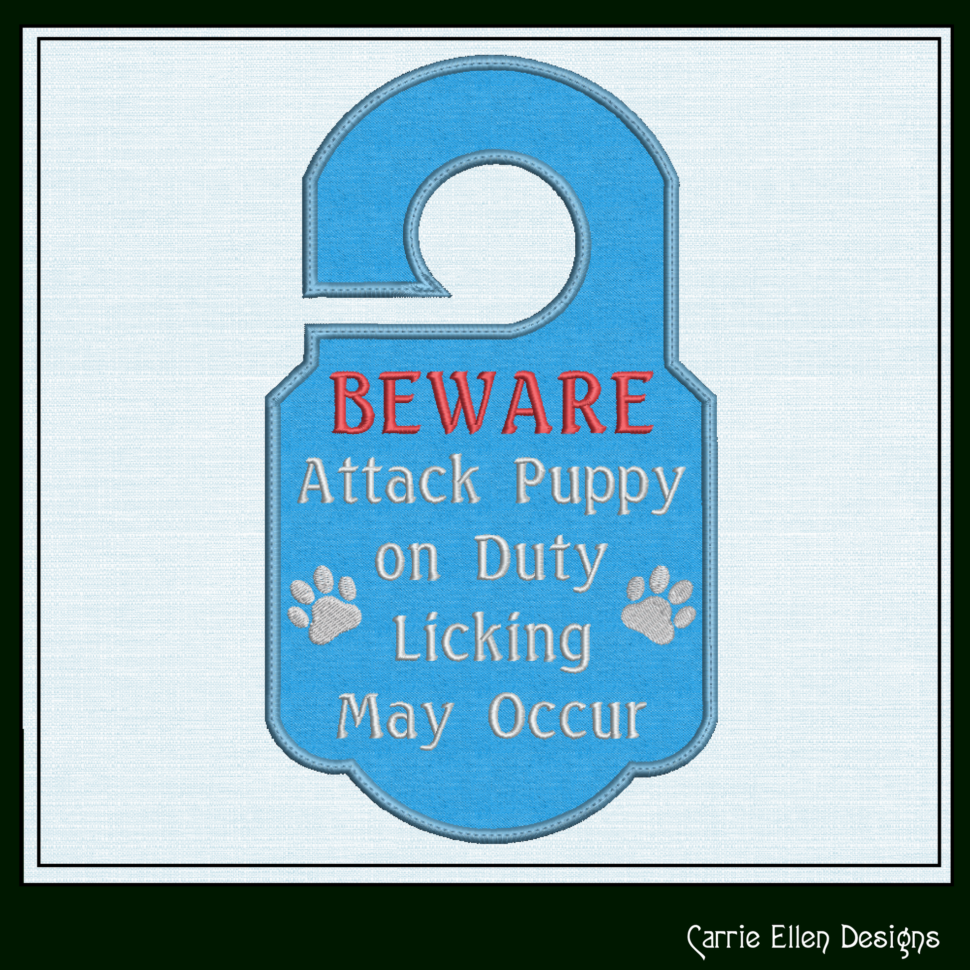 Attack Puppy On Duty ITH Door Knob Hanger Machine Embroidery Design – Dog Lover In-The-Hoop Door Sign (3393)