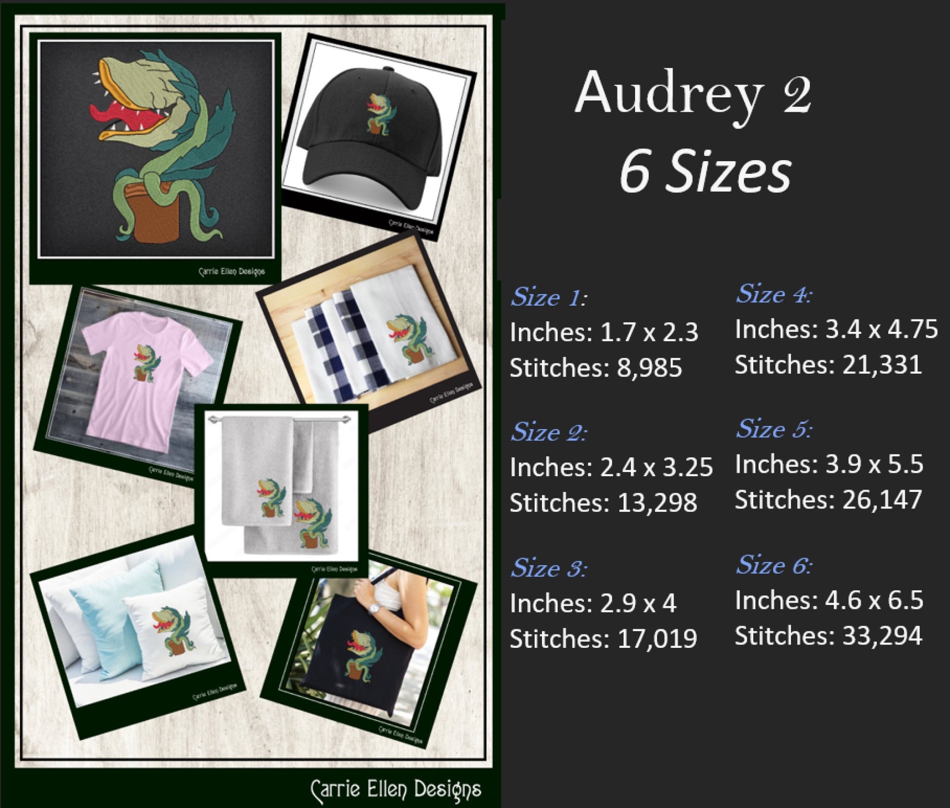 Audrey 2 Classic Horror Character Machine Embroidery Design, Little Shop Of Horrors Monster Plant, 6 sizes (2178)