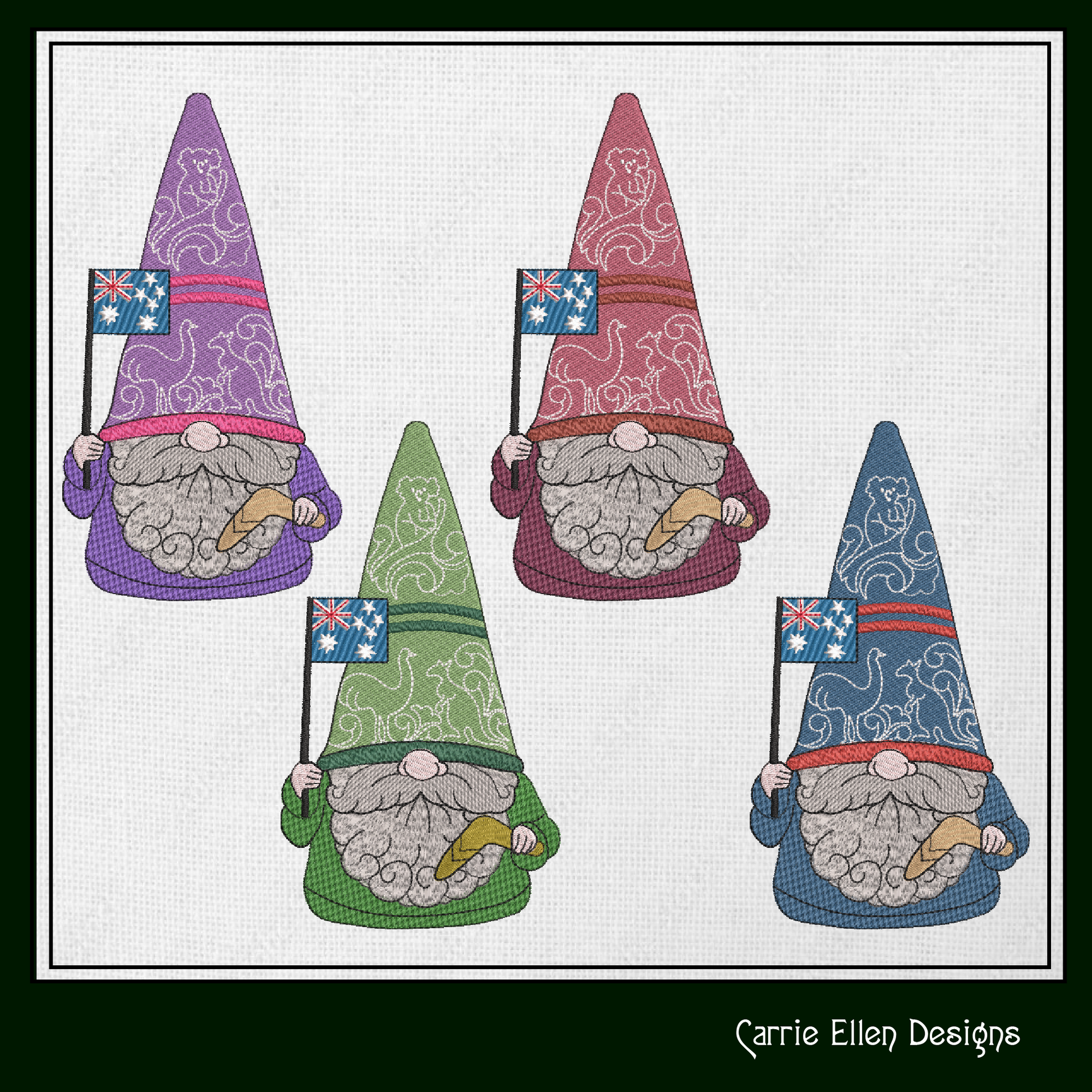 Celebrate the Land Down Under with this cheerful Australian Gnome Machine Embroidery Design! Featuring an adorable gnome proudly waving the Australian flag, this design brings playful patriotism and cozy charm to your stitching projects.