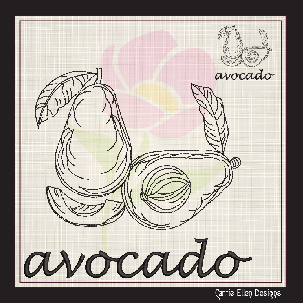 Avocado Machine Embroidery Design | Healthy Fruit Sketch | Avocado Silhouette Embroidery | Fruits and Vegetables Design | 8 Sizes (0939)