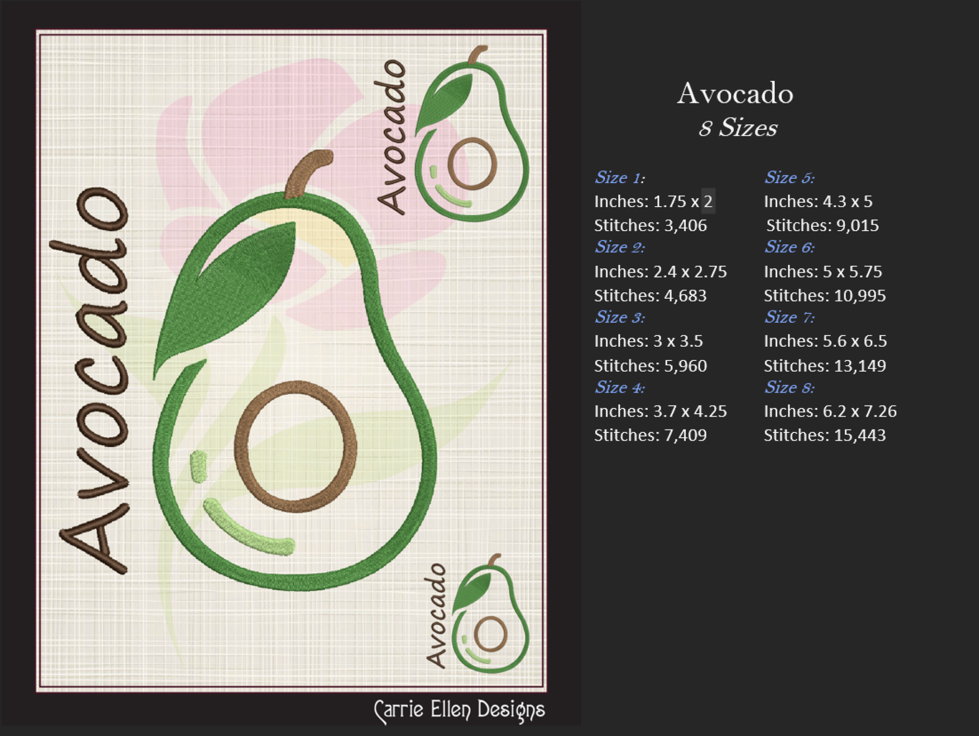 Available in 8 sizes, this versatile design ensures a perfect fit for a wide variety of projects, from home décor to clothing and accessories. Ideal for fans of healthy eating, garden lovers, or anyone who appreciates this beloved fruit, the Avocado Embroidery Design adds a wholesome touch to any item.