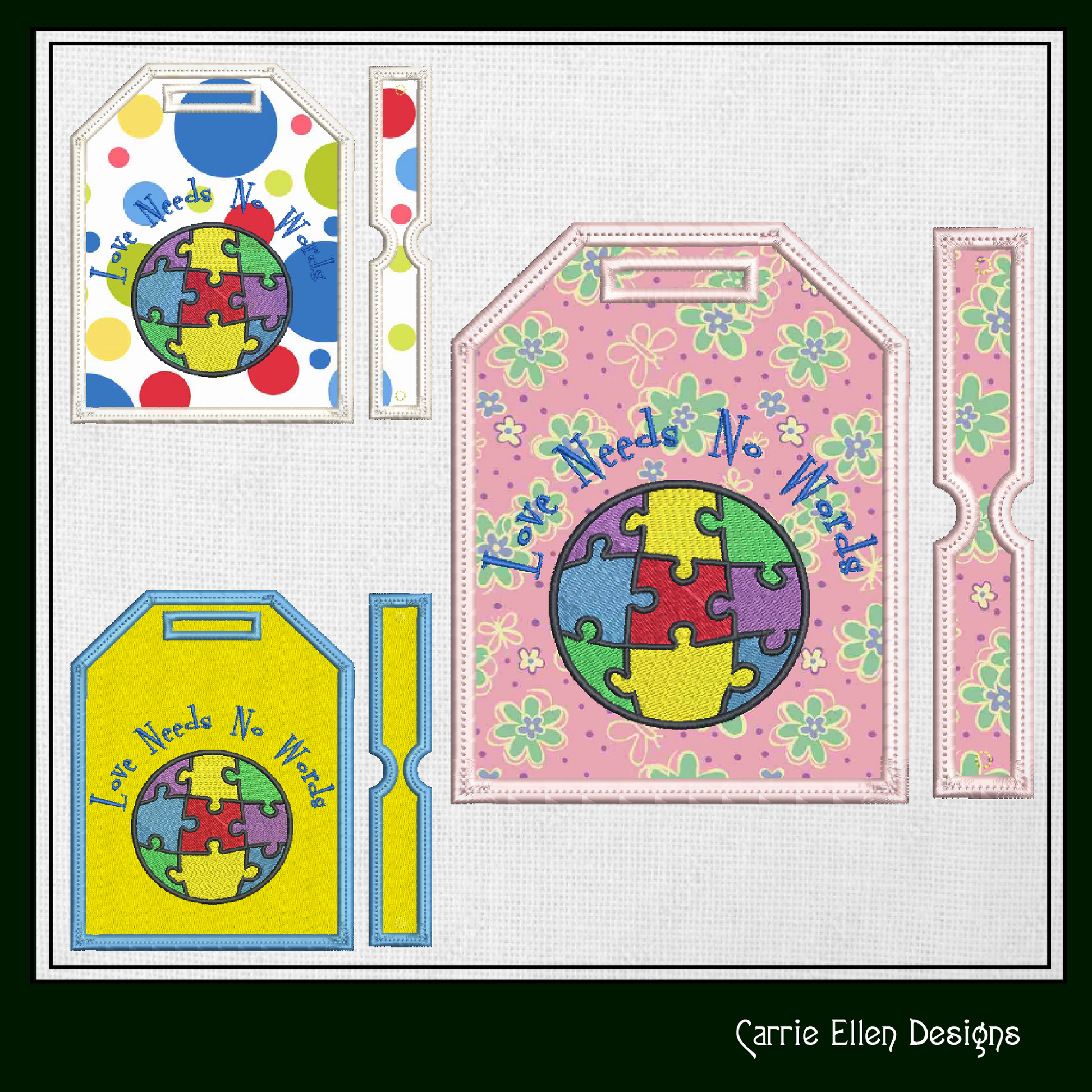 Autism Awareness Bag and Luggage Tag Machine Embroidery Design | Love Needs No Words Puzzle Heart ITH Project (1471)