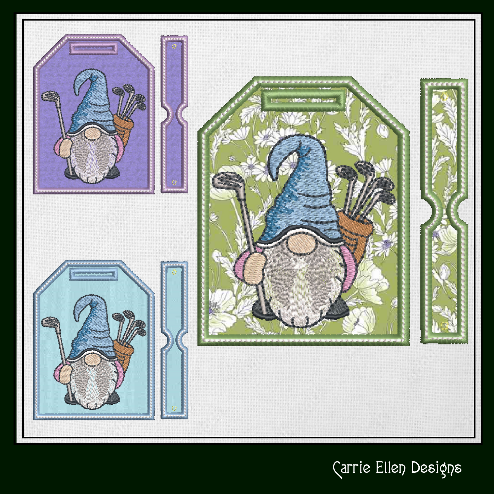 Golf Gnome Bag Tag Machine Embroidery Design | Golfing Gnome In The Hoop Luggage Tag (1786)