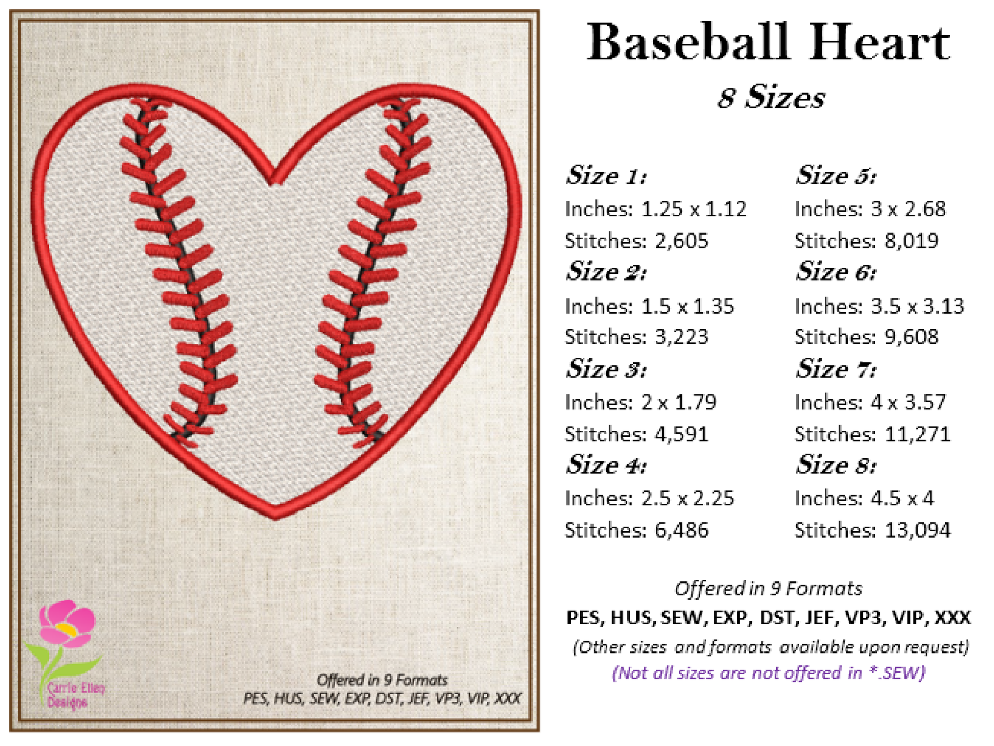 Show your love for the game with this Baseball Heart Embroidery Design! Featuring a beautifully stitched heart combined with a baseball, this design is perfect for passionate baseball and softball fans. The design is available in multiple sizes, making it versatile for various types of projects!