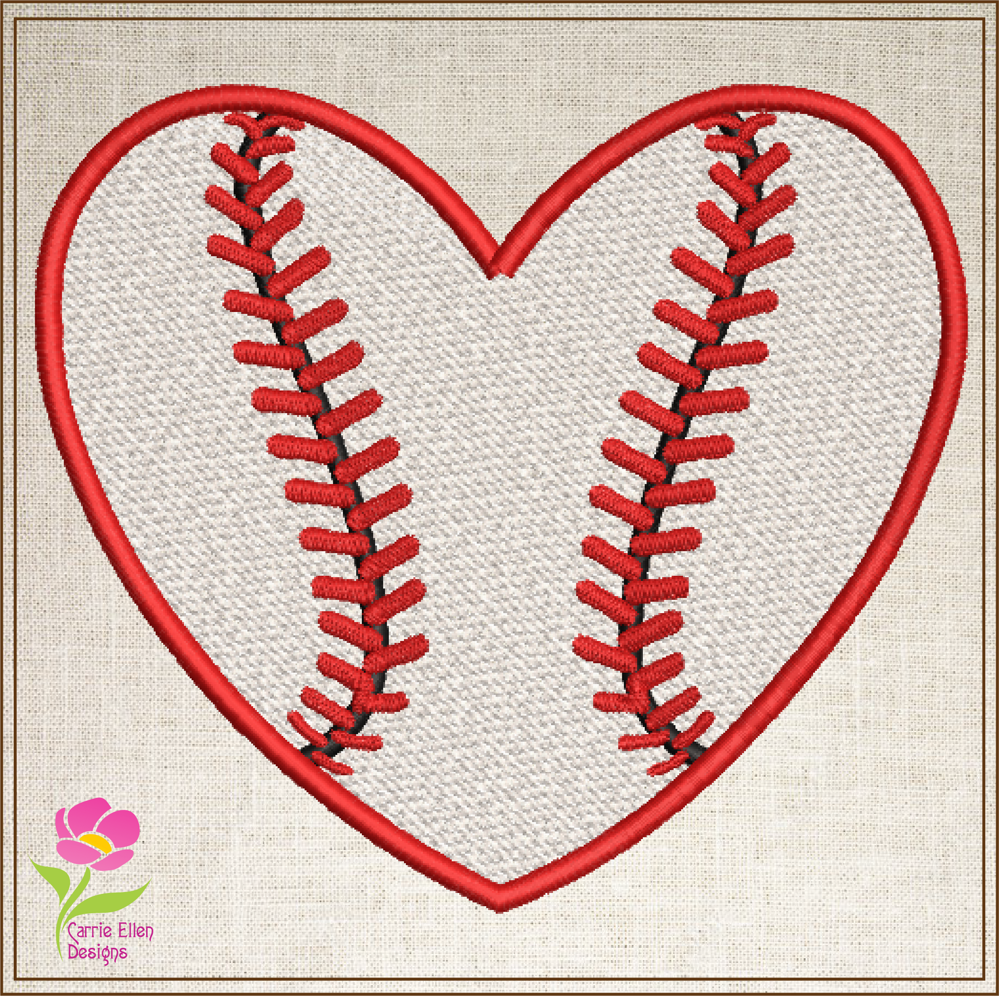 Baseball Heart Machine Embroidery Design, Softball Embroidery Design, Sport Enthusiast Design, 8 Sizes (0380)
