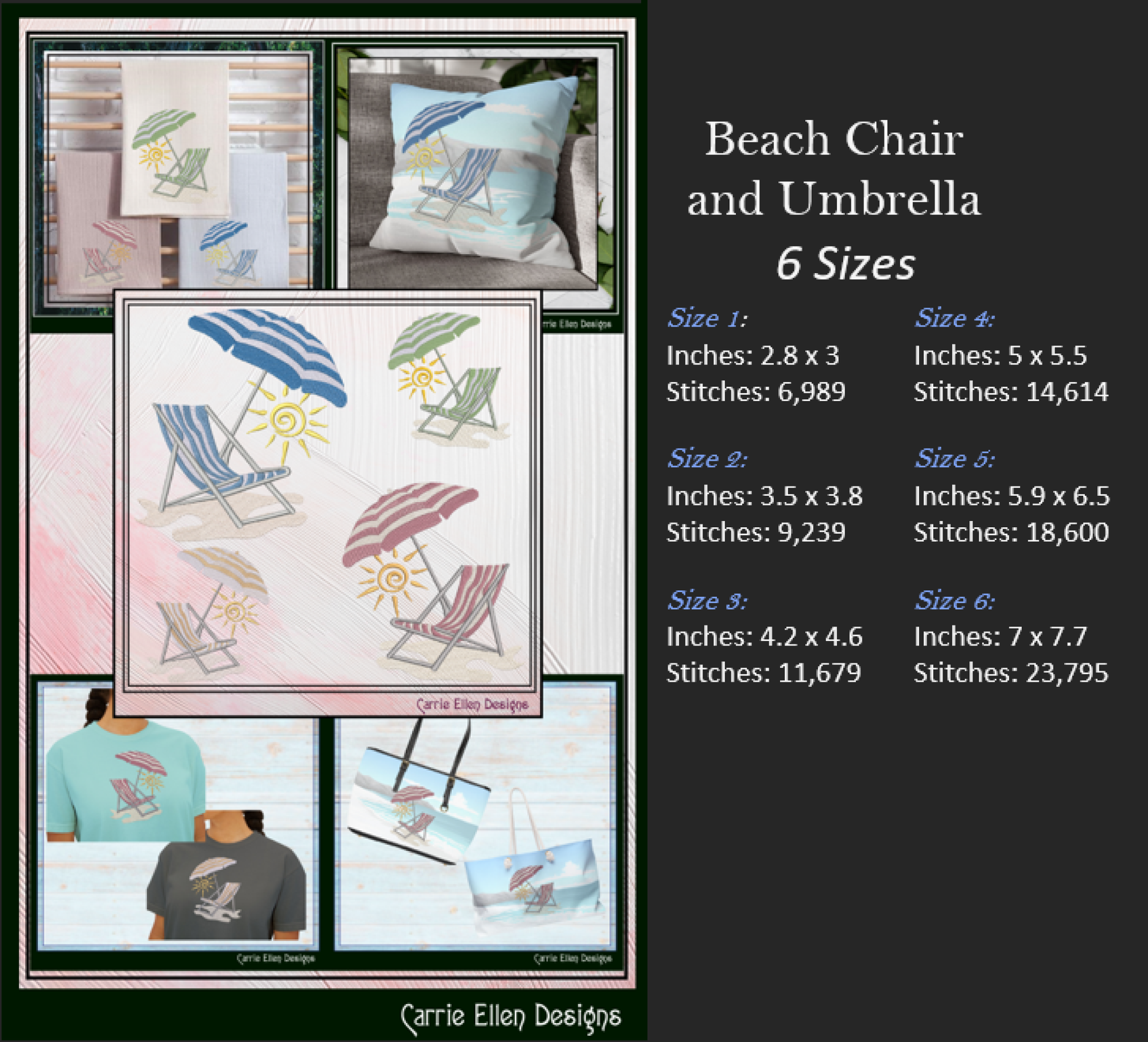 Beach Chair and Umbrella Machine Embroidery Design – Summer Vacation Beach Scene Pattern, 6 Sizes, 6 Sizes (0530)