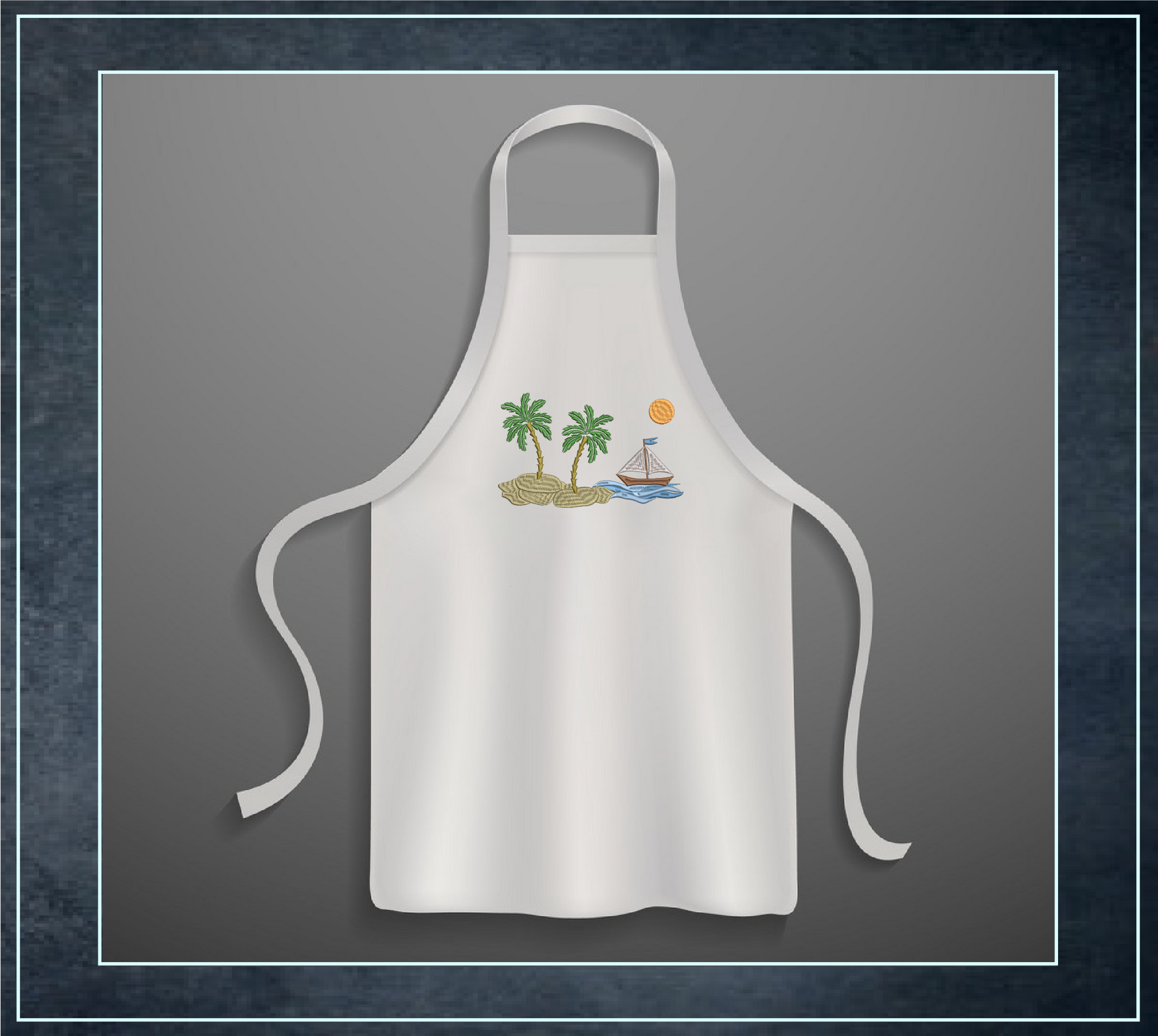 Beach Scene Machine Embroidery Design – Tropical Island and Sailboat Pattern, 8 Sizes (0536)