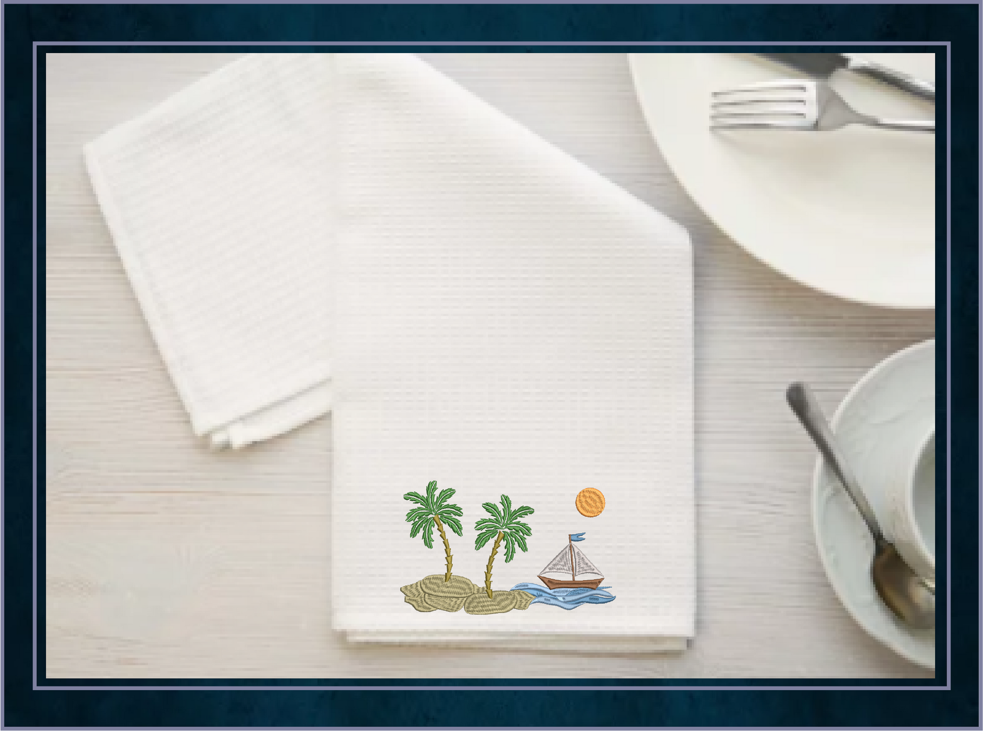Capture the essence of a serene seaside getaway with this Beach Scene Machine Embroidery Design, featuring a tropical island landscape and a graceful sailboat gliding along the horizon. This calming design is perfect for summer projects, beach-themed gifts, or home décor items like throw pillows, tote bags, or wall hangings.