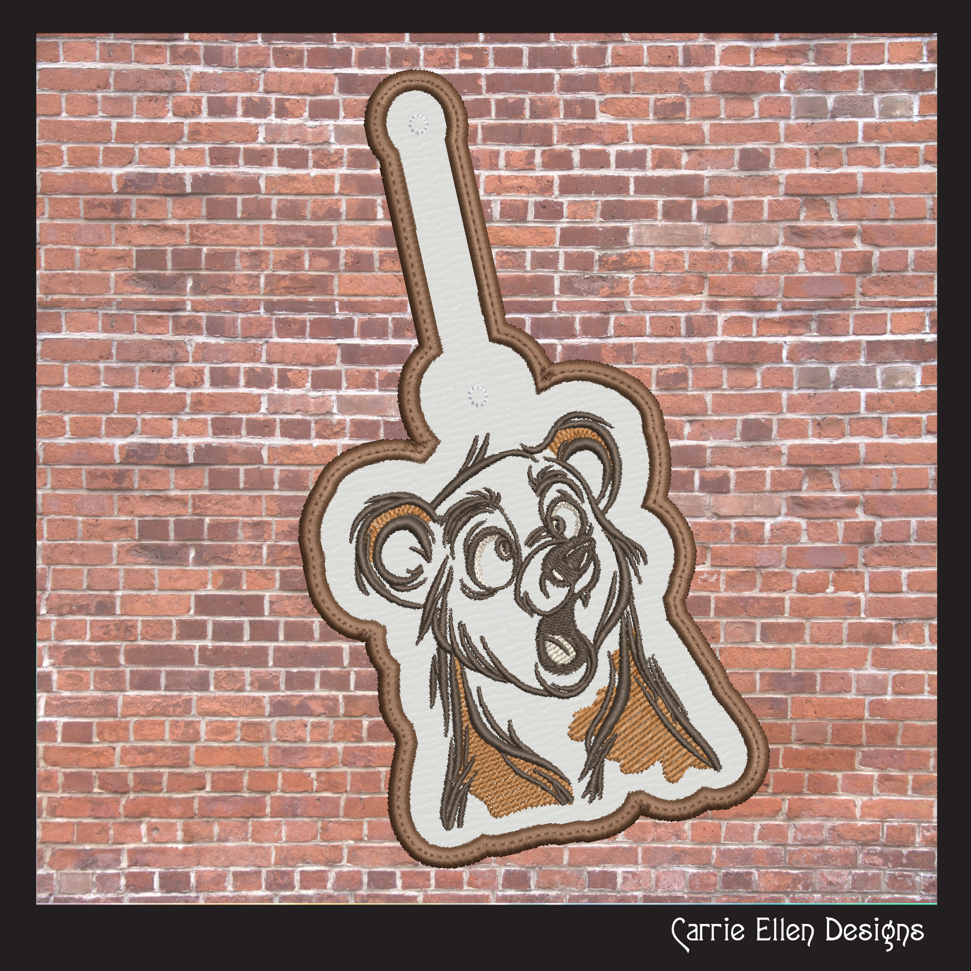 Surprised Bear ITH Key Fob Machine Embroidery Design | Cartoon Wildlife Animal In-The-Hoop Key Tag Project (2511)