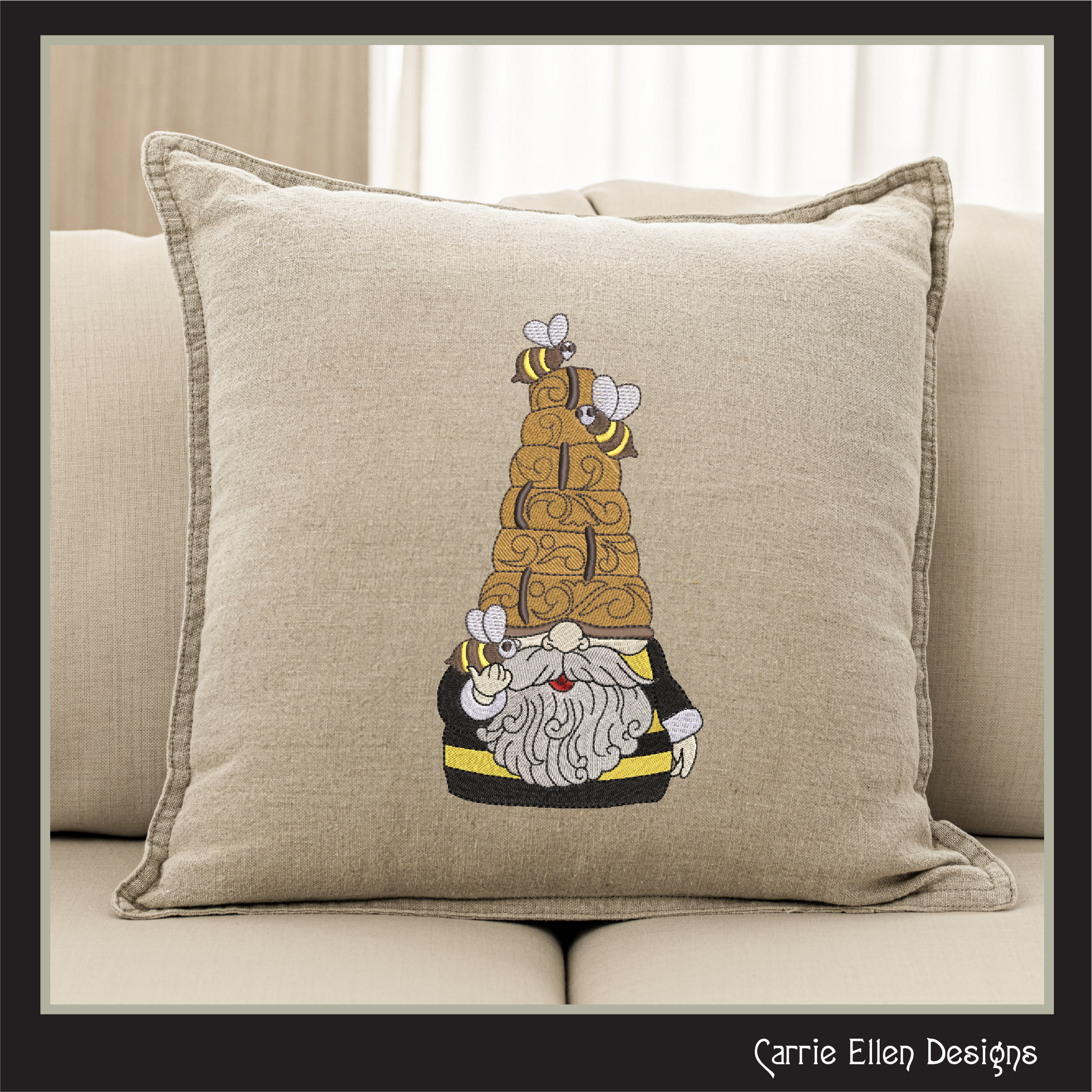 Bring a charming touch of whimsy to your embroidery projects with the Gnome Machine Embroidery Design, featuring an adorable garden gnome surrounded by a beehive and buzzing bees. This delightful design captures the magic of garden life and the playful nature of gnomes, making it the perfect addition to any gardening enthusiast's collection or for anyone who enjoys a bit of fantasy and fun in their décor.