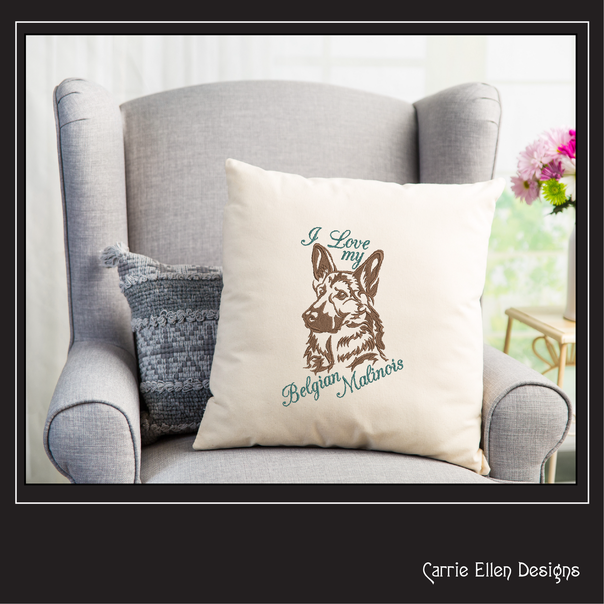 I Love My Belgian Malinois Dog Machine Embroidery Design – Rescue Animal & Pet Lover Pattern – 6 Sizes (1542)