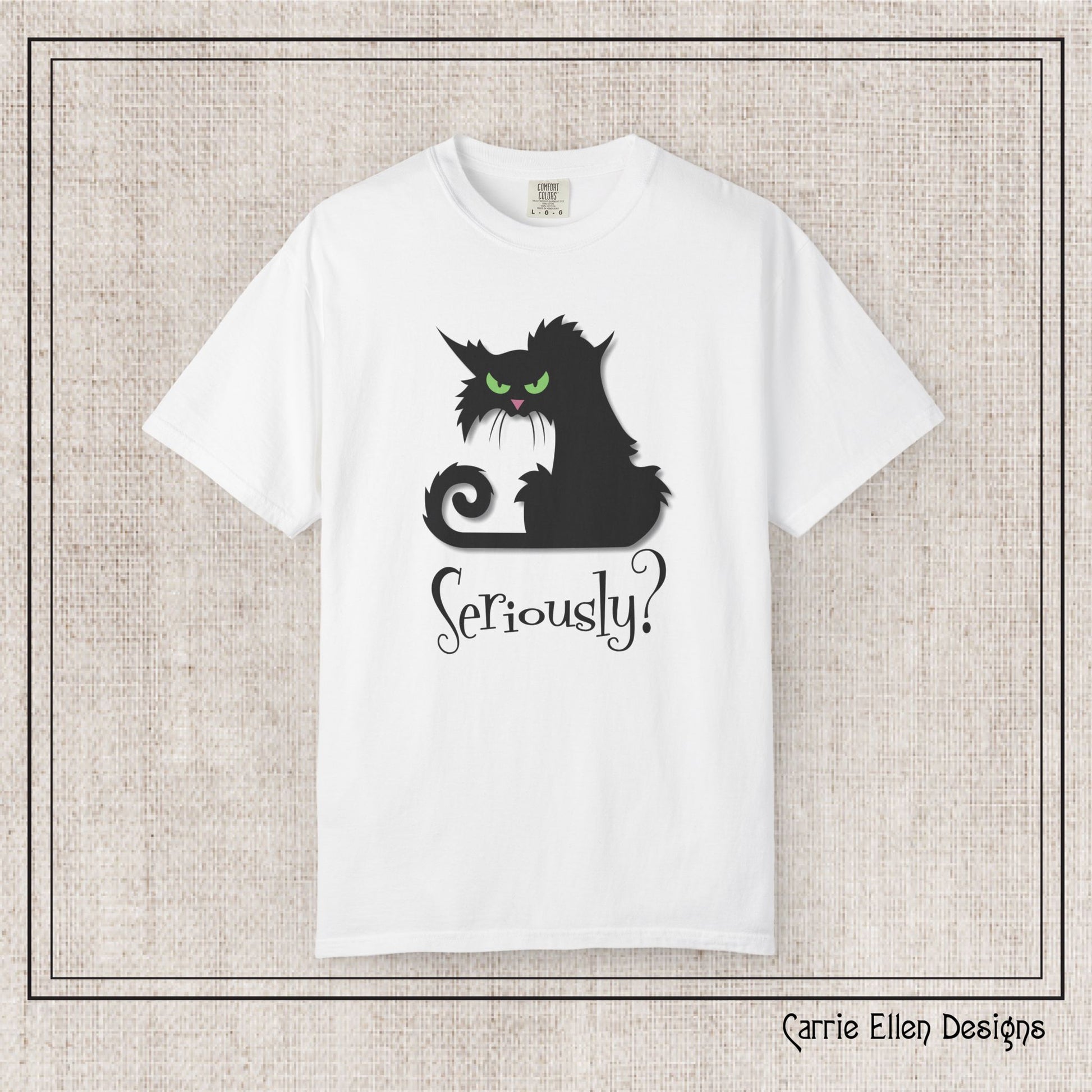 Black Cat Comfort Colors T-Shirt – Seriously Sarcastic Cat Attitude Short Sleeve Tee for Cat Lovers | Multiple Color Options (P-6076)