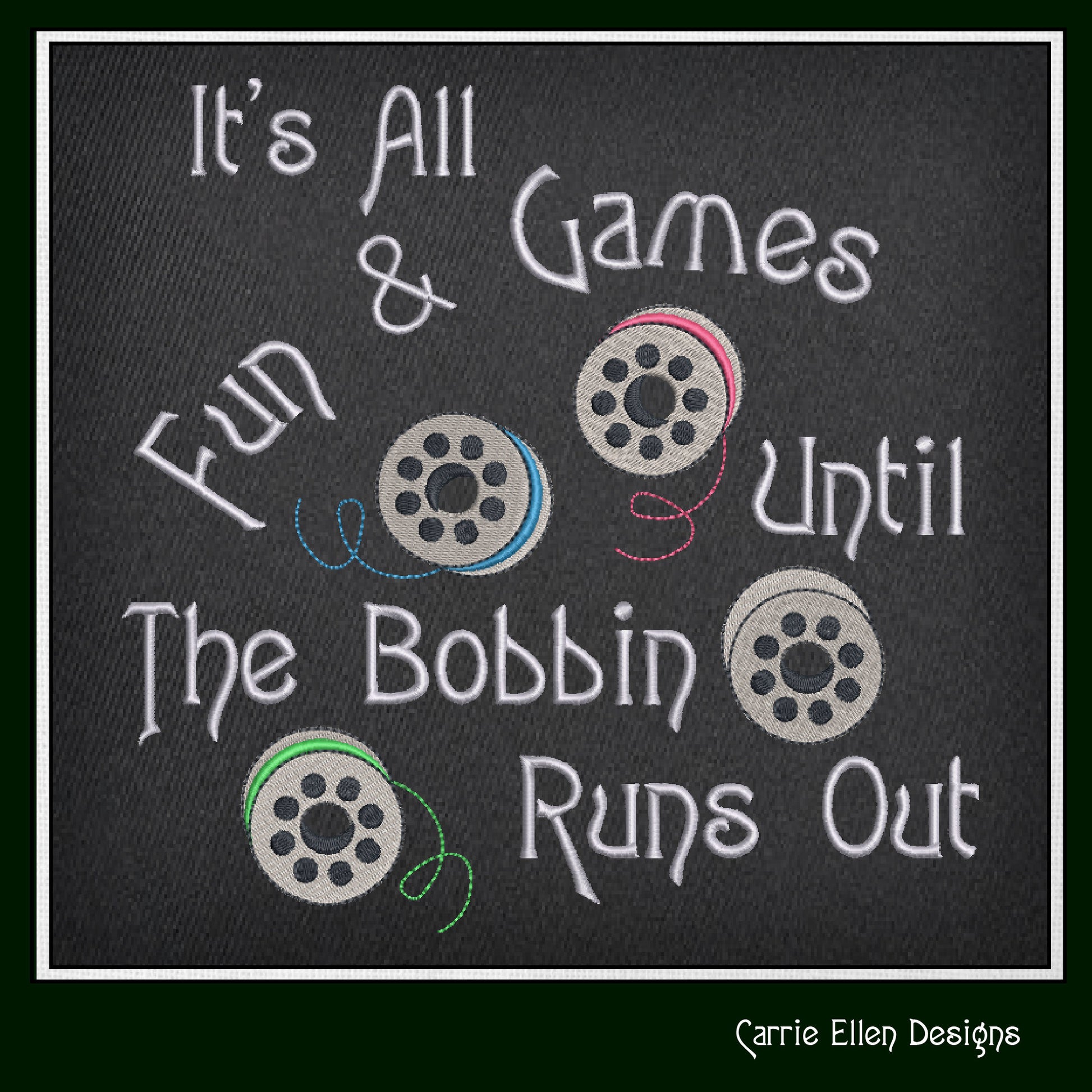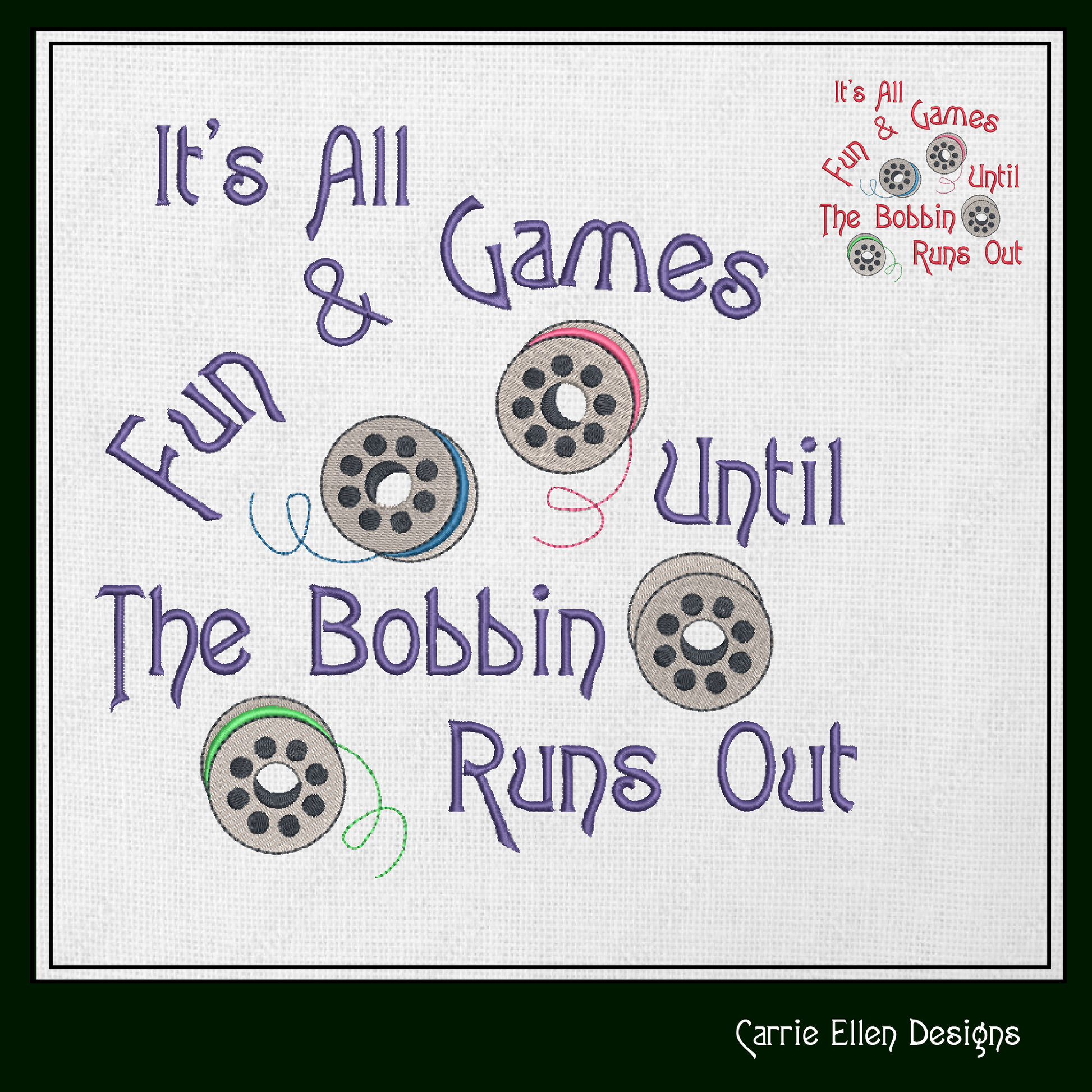 Bobbin Thread Machine Embroidery Design – "It's All Fun and Games" Humorous Sayings and Quotes, 6 Sizes (1254)