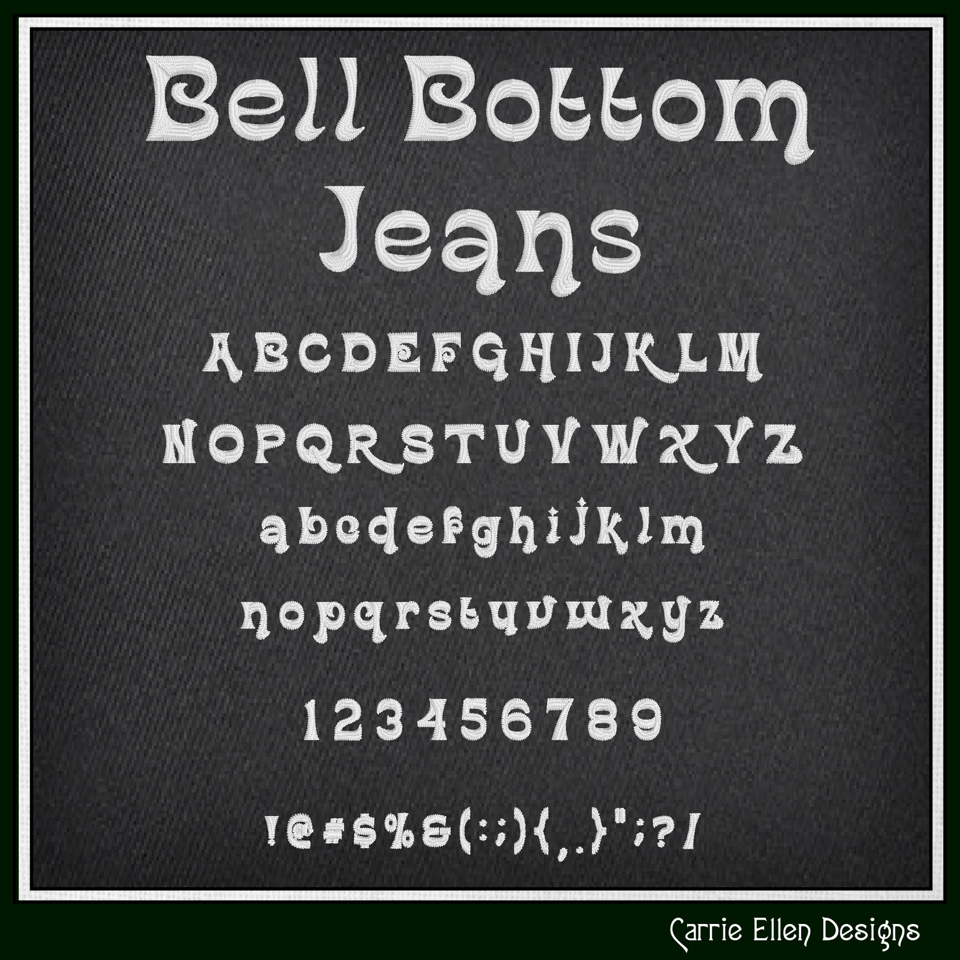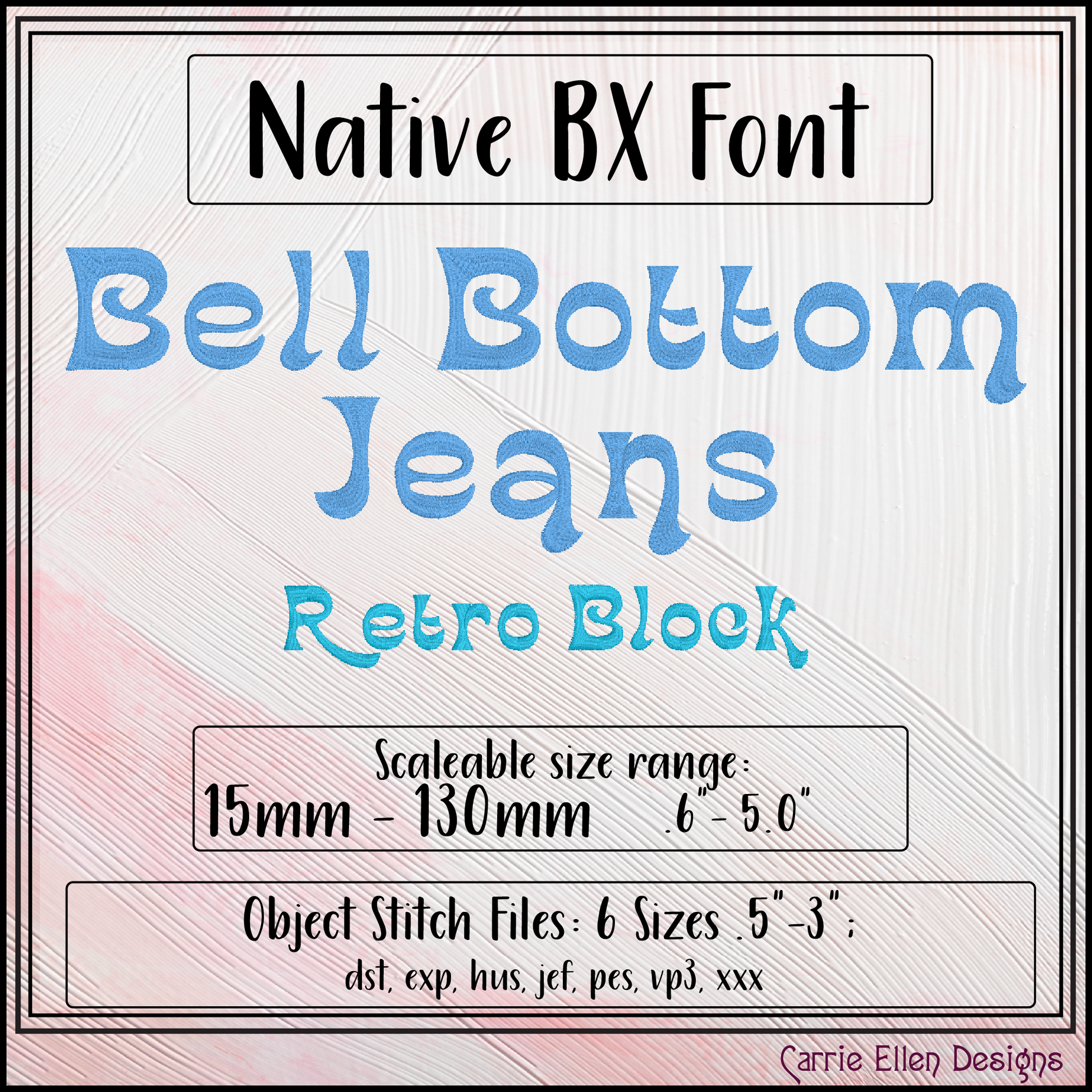 Bell Bottom Jeans BX Fonts and Lettering Stitch Files, Retro Boho Block Alphabet Machine Embroidery (3764)