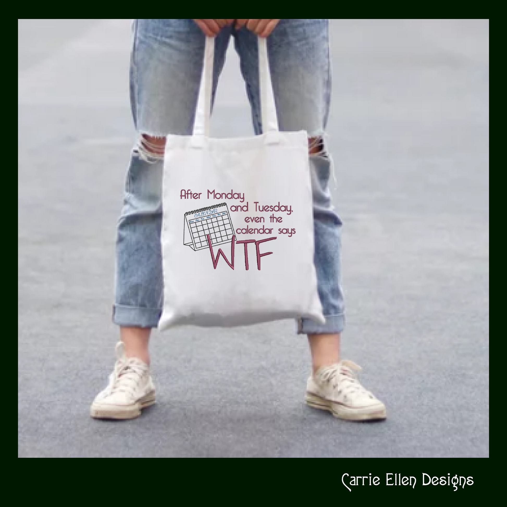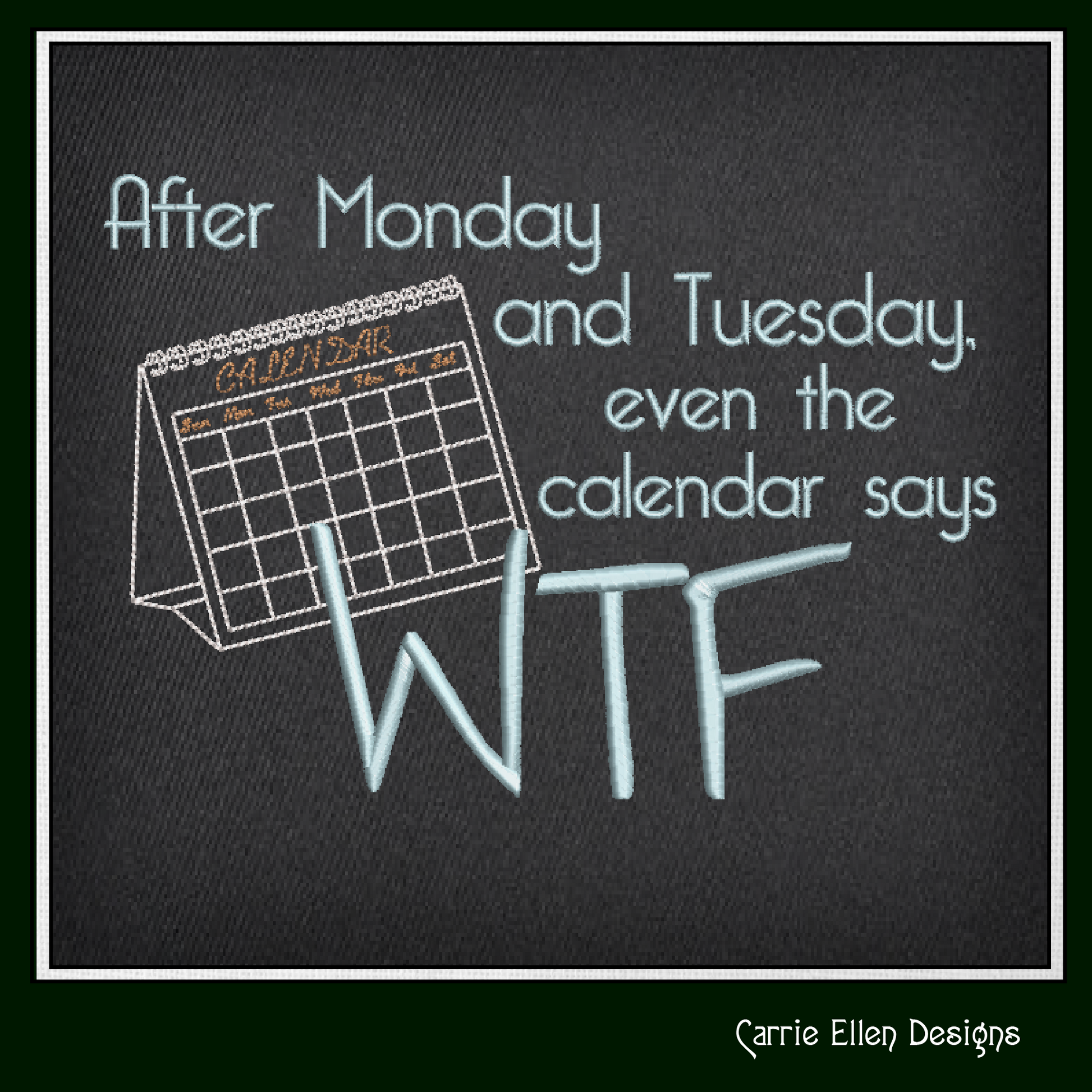 Funny Machine Embroidery Design | Calendar Says WTF Design | Humorous Quote Pattern | 6 Sizes (1905)