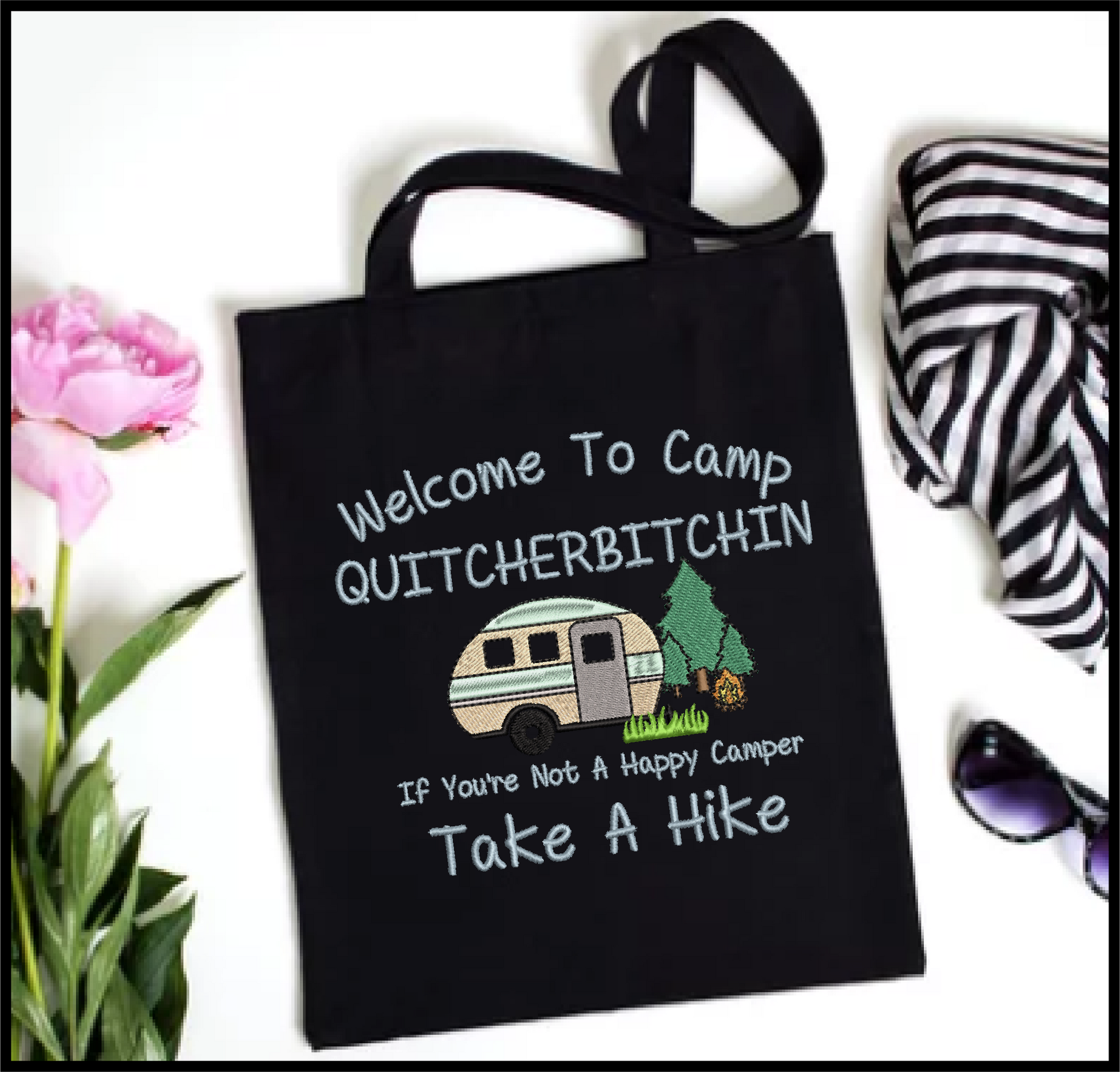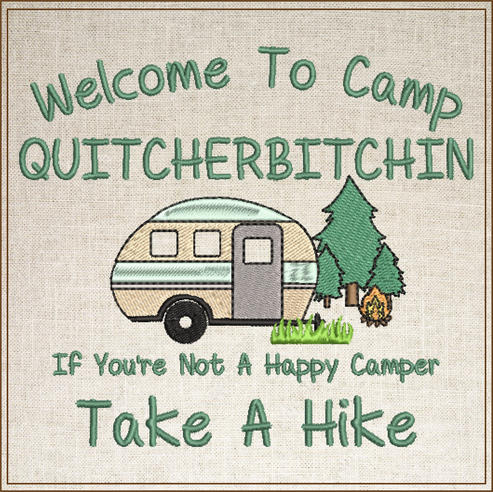Camp Quitcherbitchin Machine Embroidery Design | Funny Camping Saying | Humorous Quote Embroidery Design | 6 Sizes (0701)