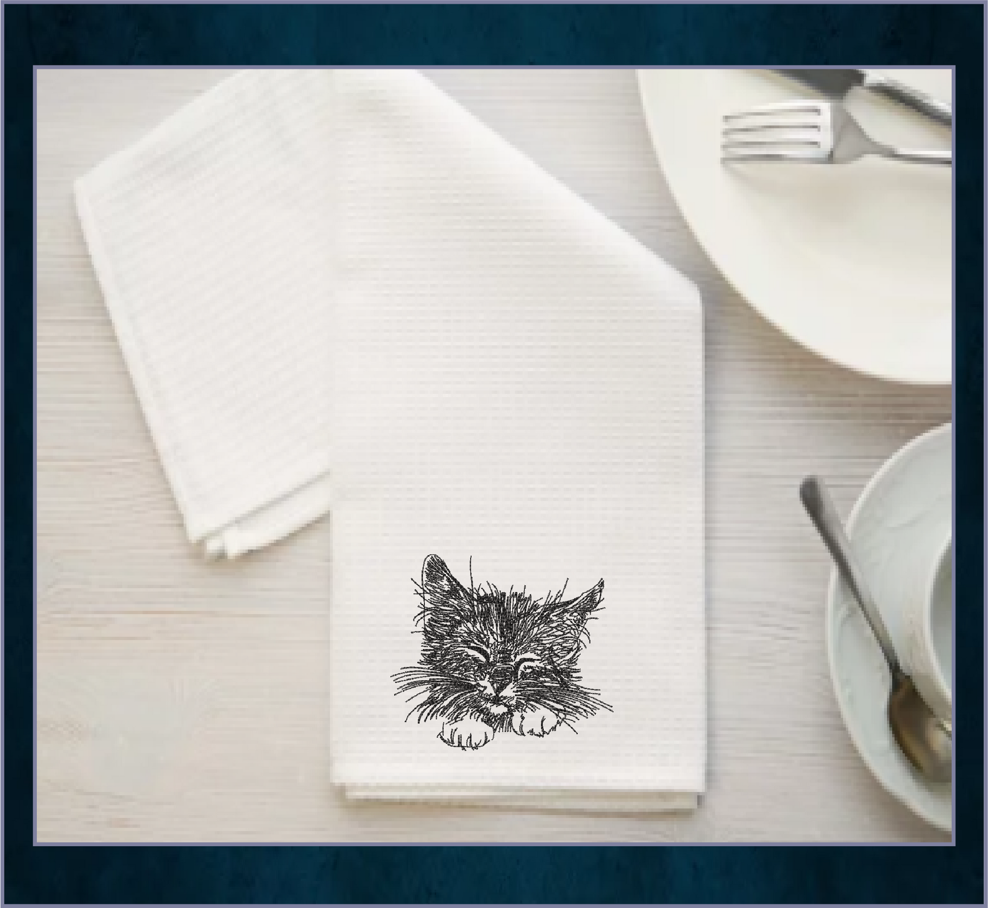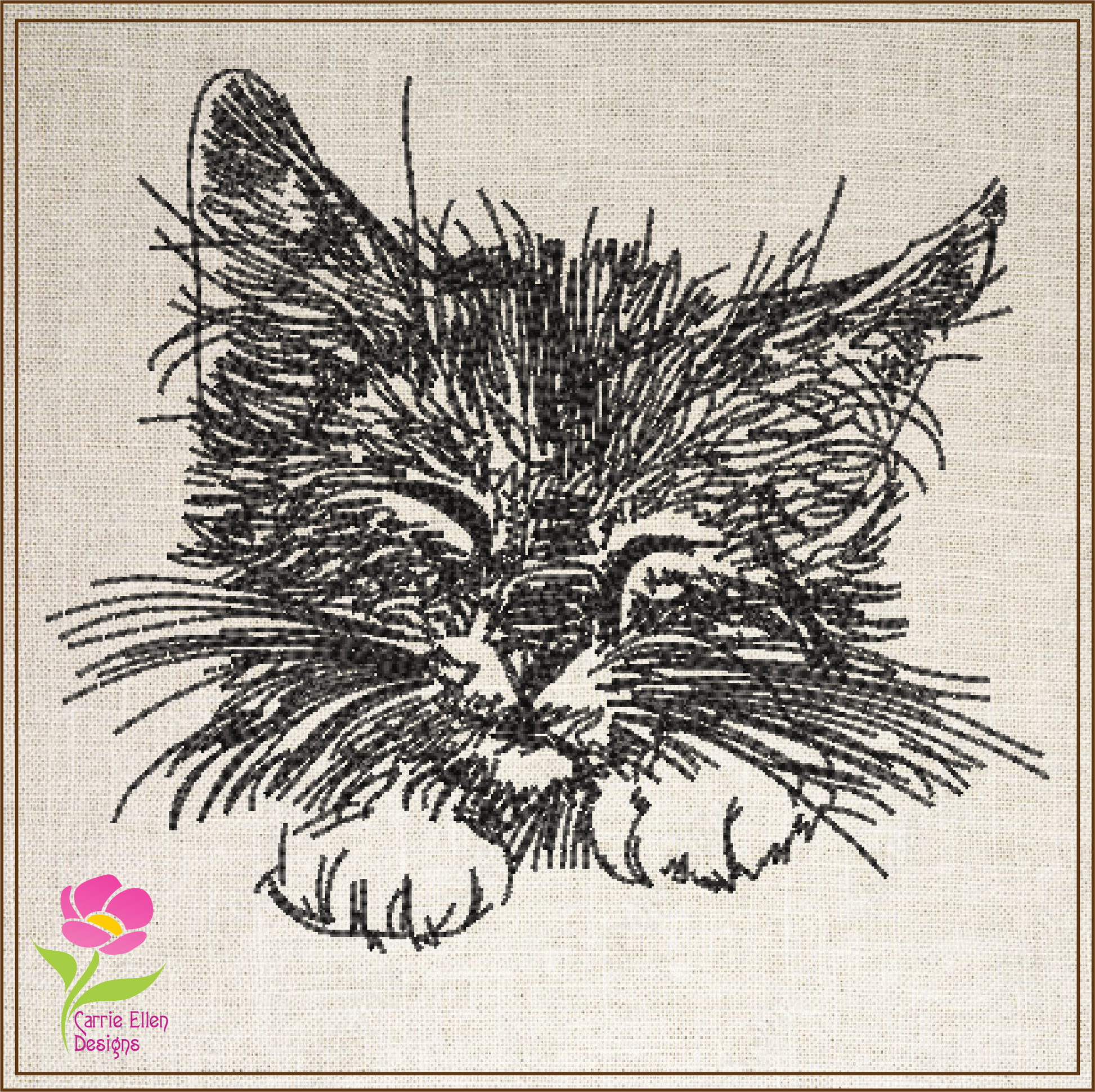 Sleepy Kitten Machine Embroidery Design | Kitten Face Sketch | Pet Cat Embroidery | Cute Animal Design | 6 Sizes (0320)