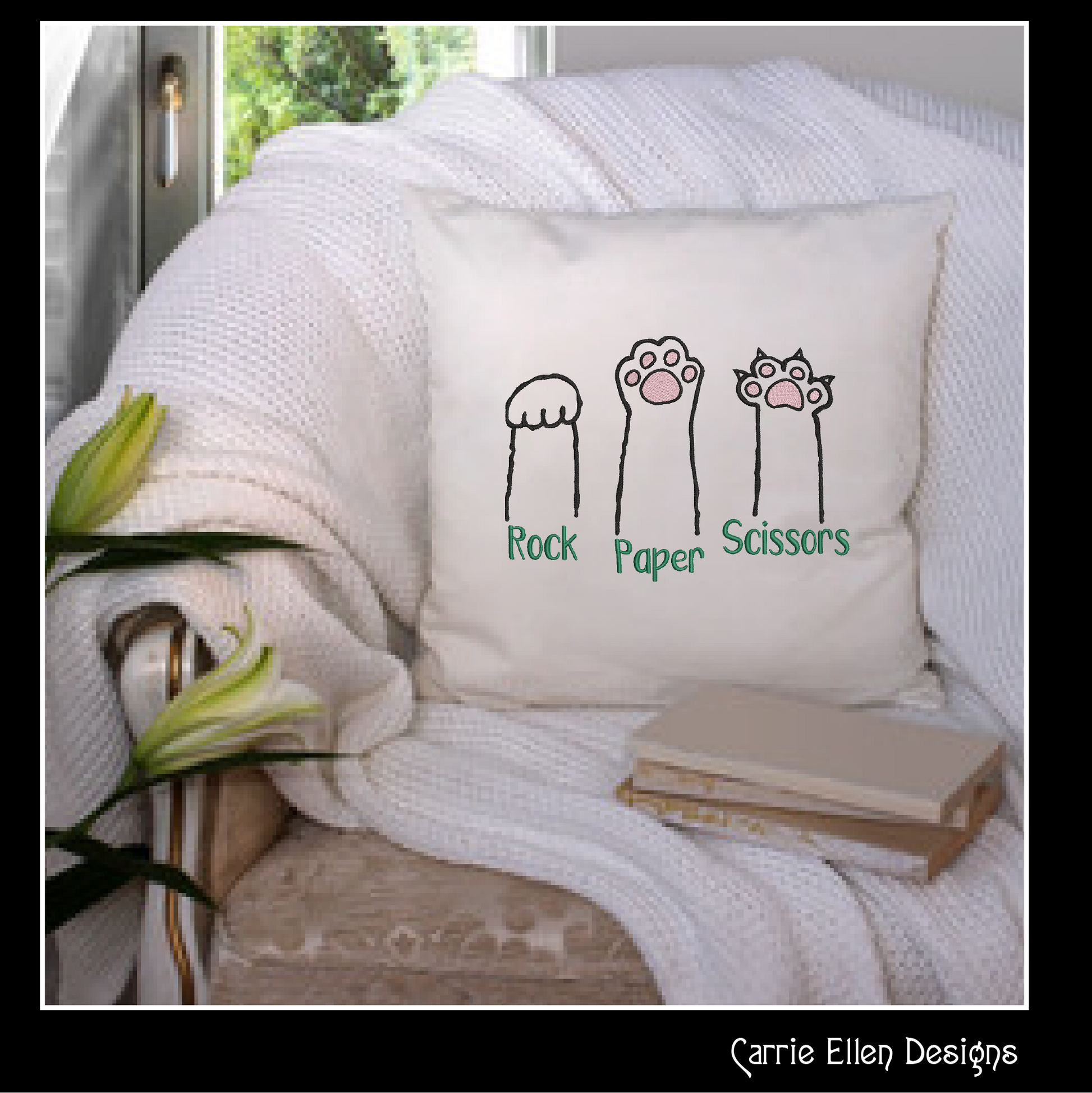 Rock... Paper... Scissors... Cat Paw! When logic fails, let your cat win — every time! This Rock Paper Scissors Cat Paw Machine Embroidery Design brings hilarious pet-parent truth to life in stitches.