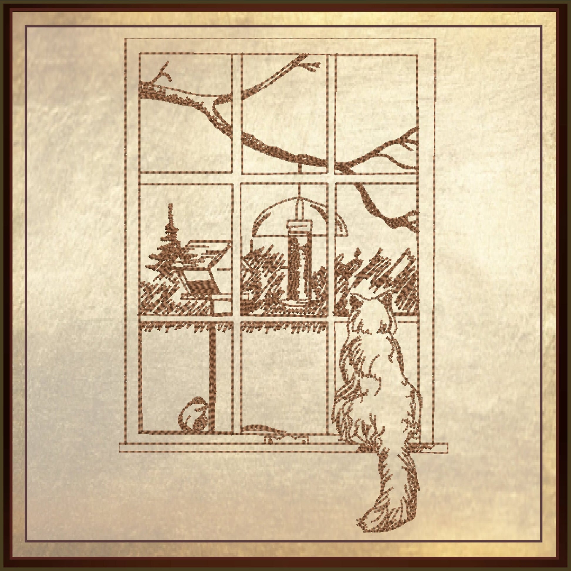 Cat Bird Watching Machine Embroidery Design | Cat Sitting in Window Sketch | Artistic Cat Embroidery Design | 6 Sizes (0730)