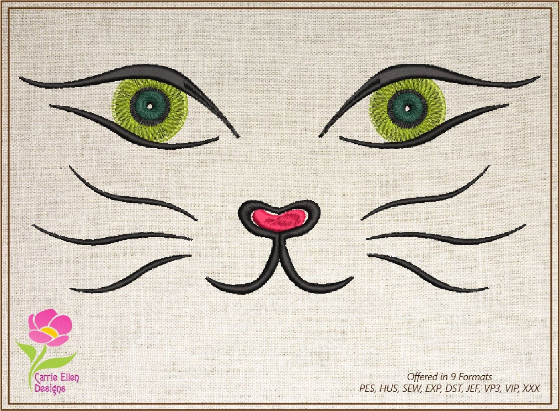 Cat Face Machine Embroidery Design, Pet Embroidery, Cute Cat Cartoon Design, 10 Sizes (0308)