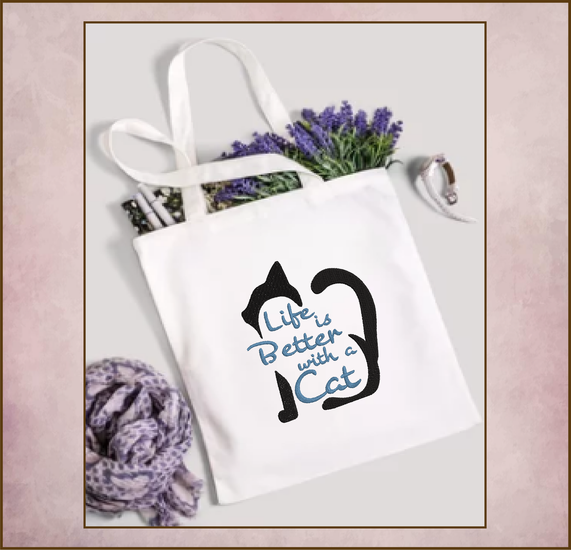 Life is Better with a Cat Embroidery Design, Cat Lover Saying, Digital Machine Embroidery File, 8 Sizes (0387)