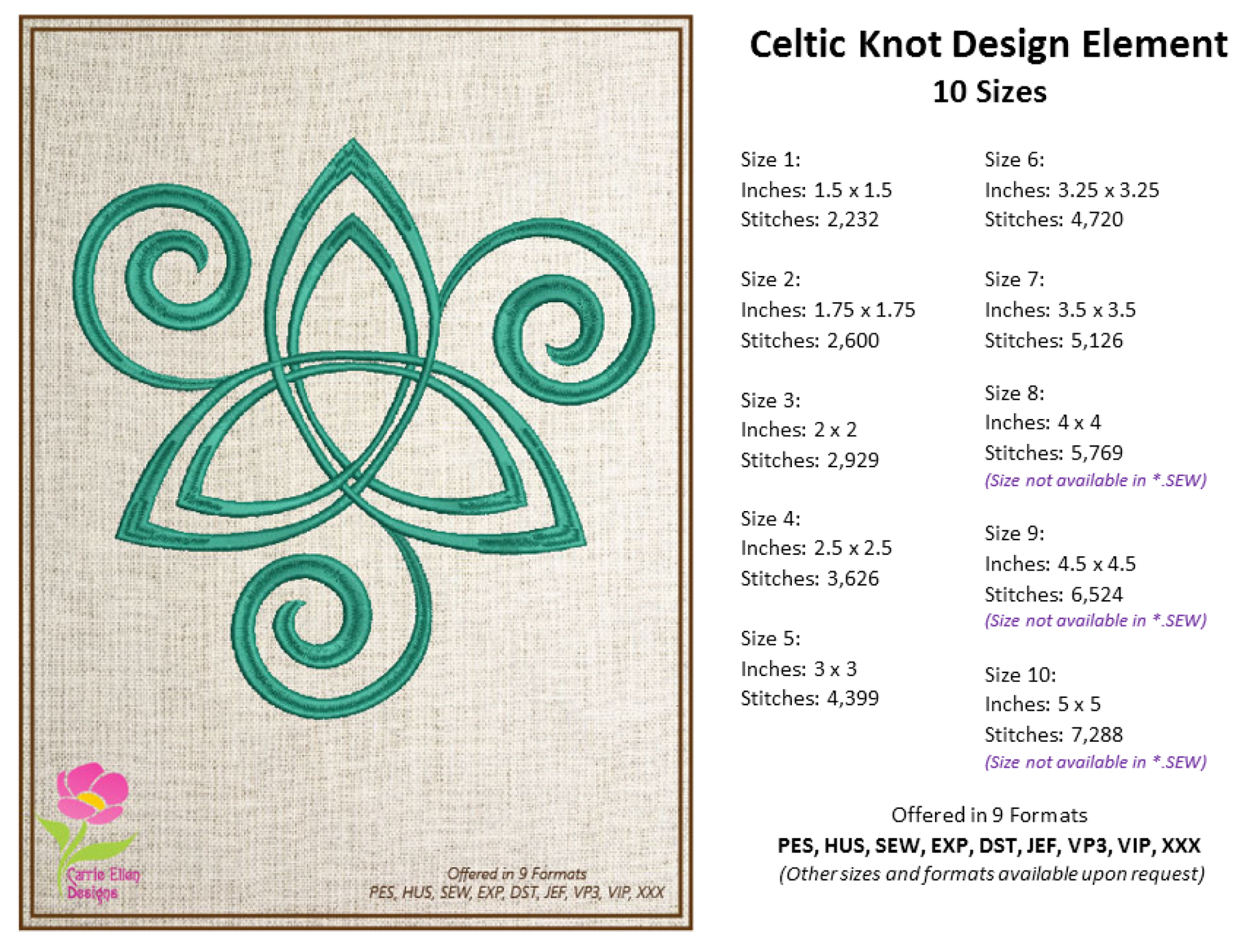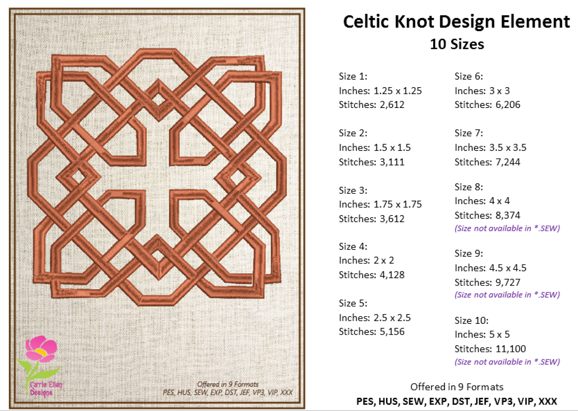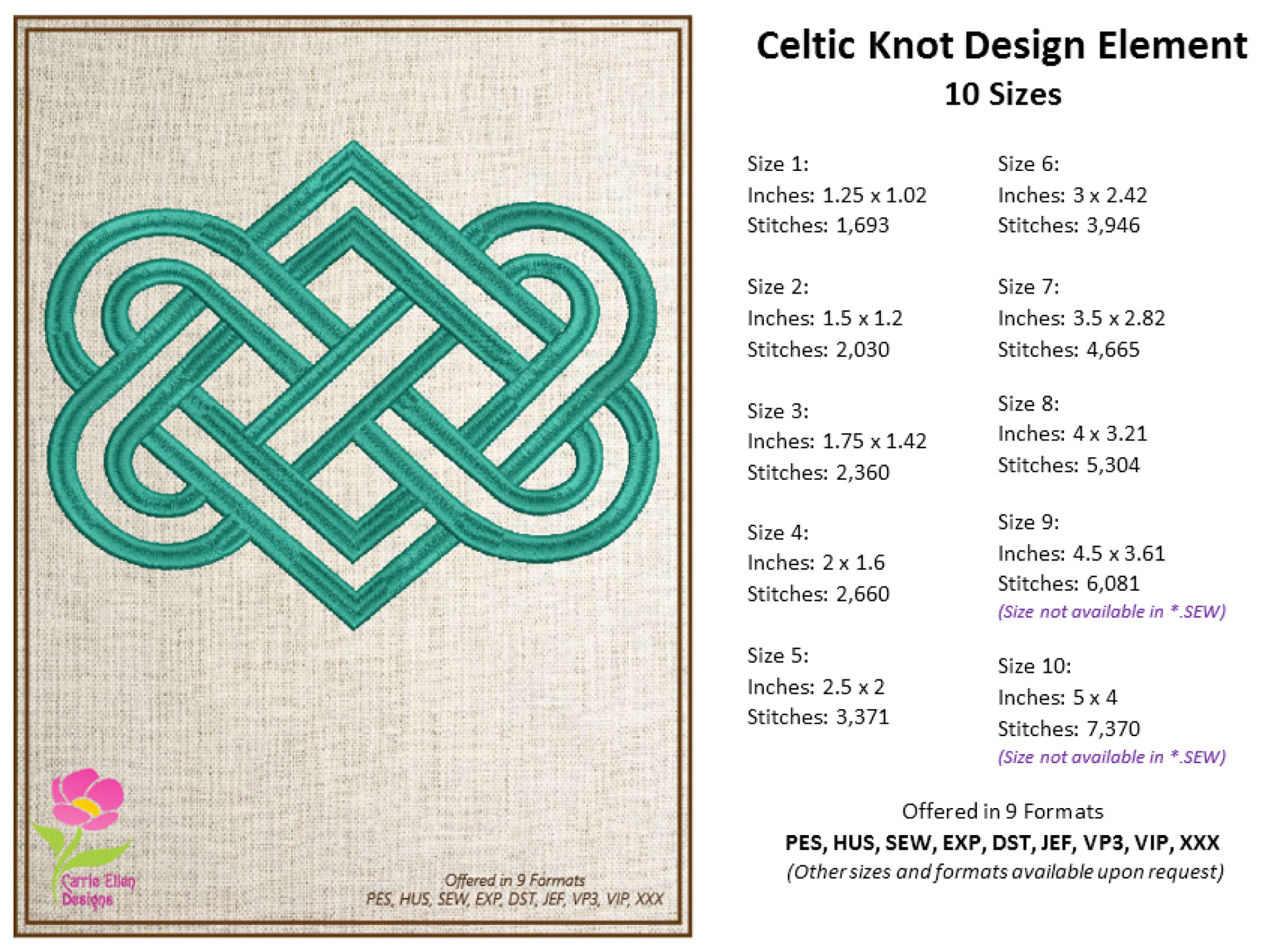 Celtic Knot Machine Embroidery Design Bundle | 6 Intricate Knot Designs | 10 Sizes Each | Timeless Celtic Patterns (0884)