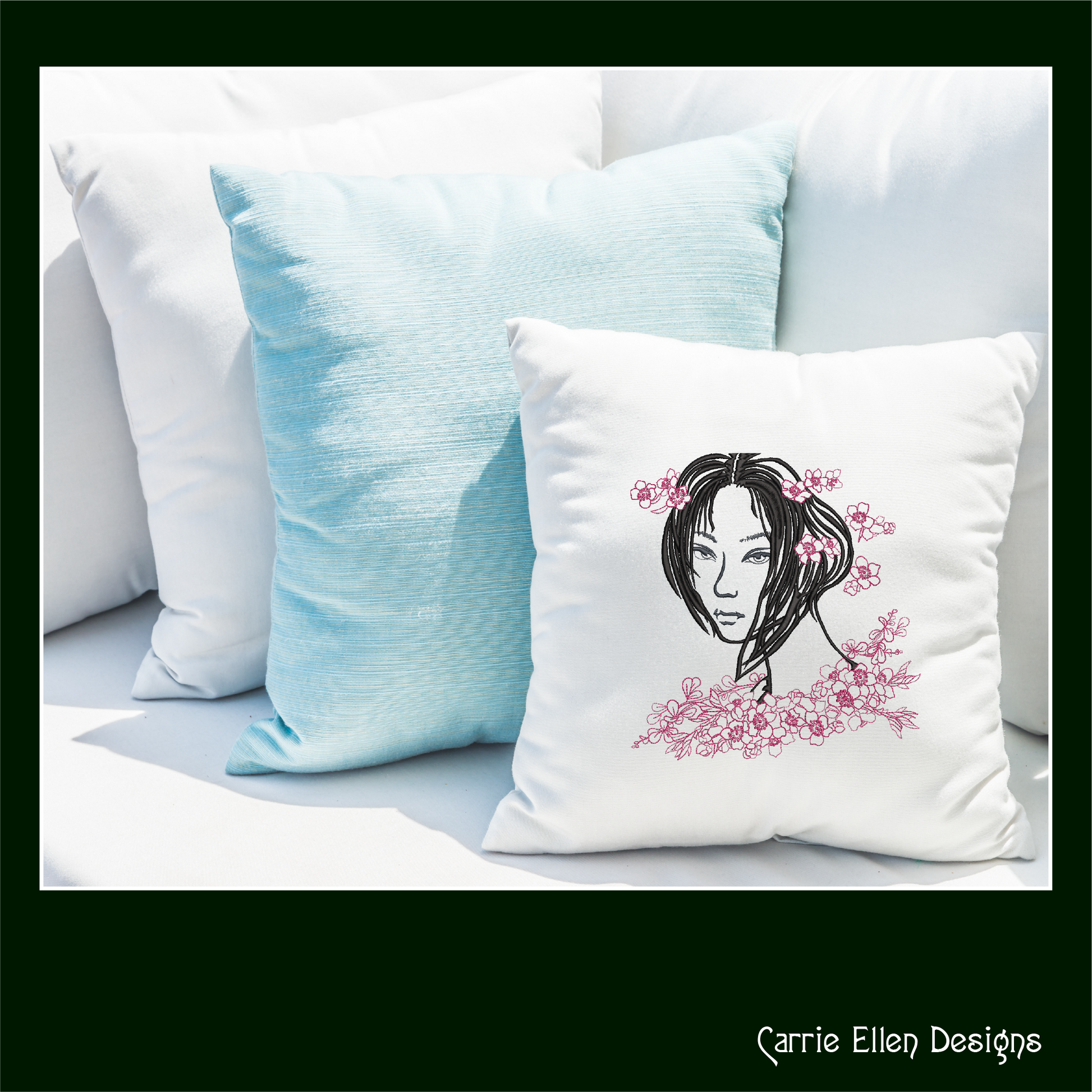 Cherry Blossom Lady Machine Embroidery Design | Woman with Flowers | Artistic Floral Sketch | 6 Sizes (1846)