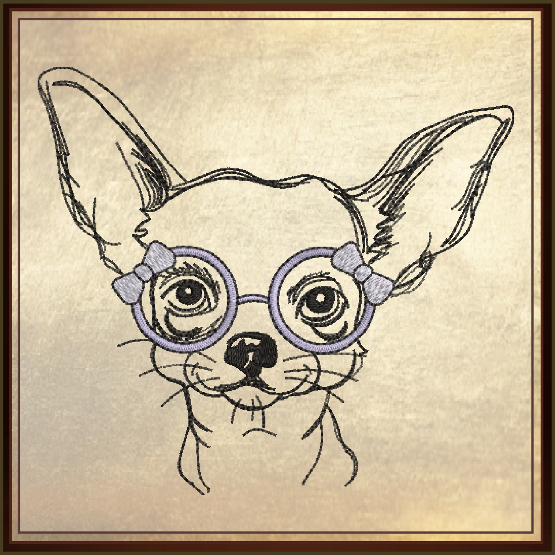 Chihuahua with Glasses Machine Embroidery Design | Cute Puppy Dog Sketch | Chihuahua Animal Line Art Pattern | 6 Sizes (0805)