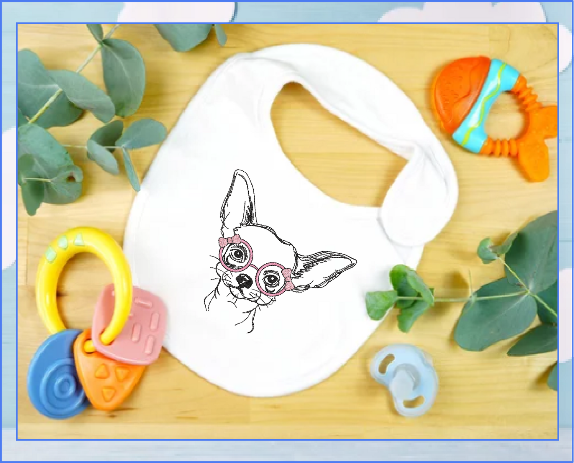 Add playful charm to your next embroidery project with this Chihuahua with Glasses Machine Embroidery Design! Featuring an adorable Chihuahua dog sporting stylish glasses in a cute sketch line art style, this design is perfect for dog lovers, pet-themed gifts, and fun custom clothing or accessories.
