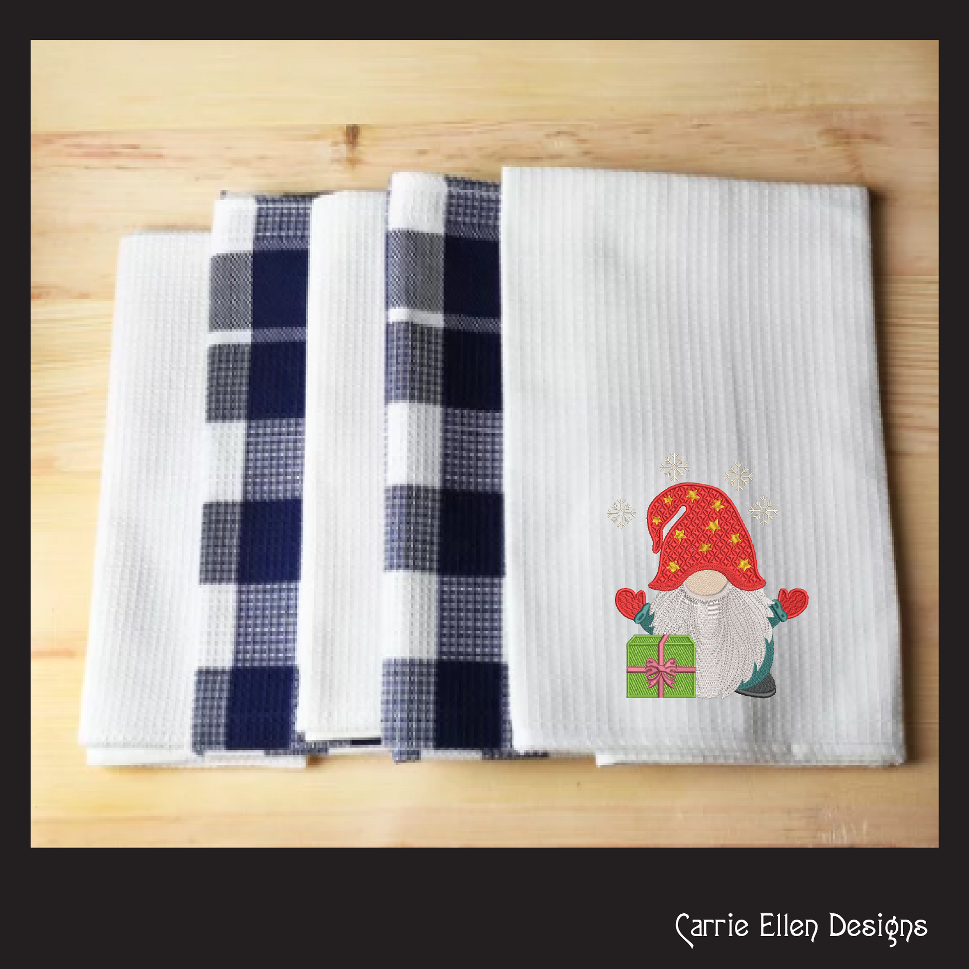 Christmas Gnome Machine Embroidery Design – Holiday Gnome with Present – 6 Sizes (1997)