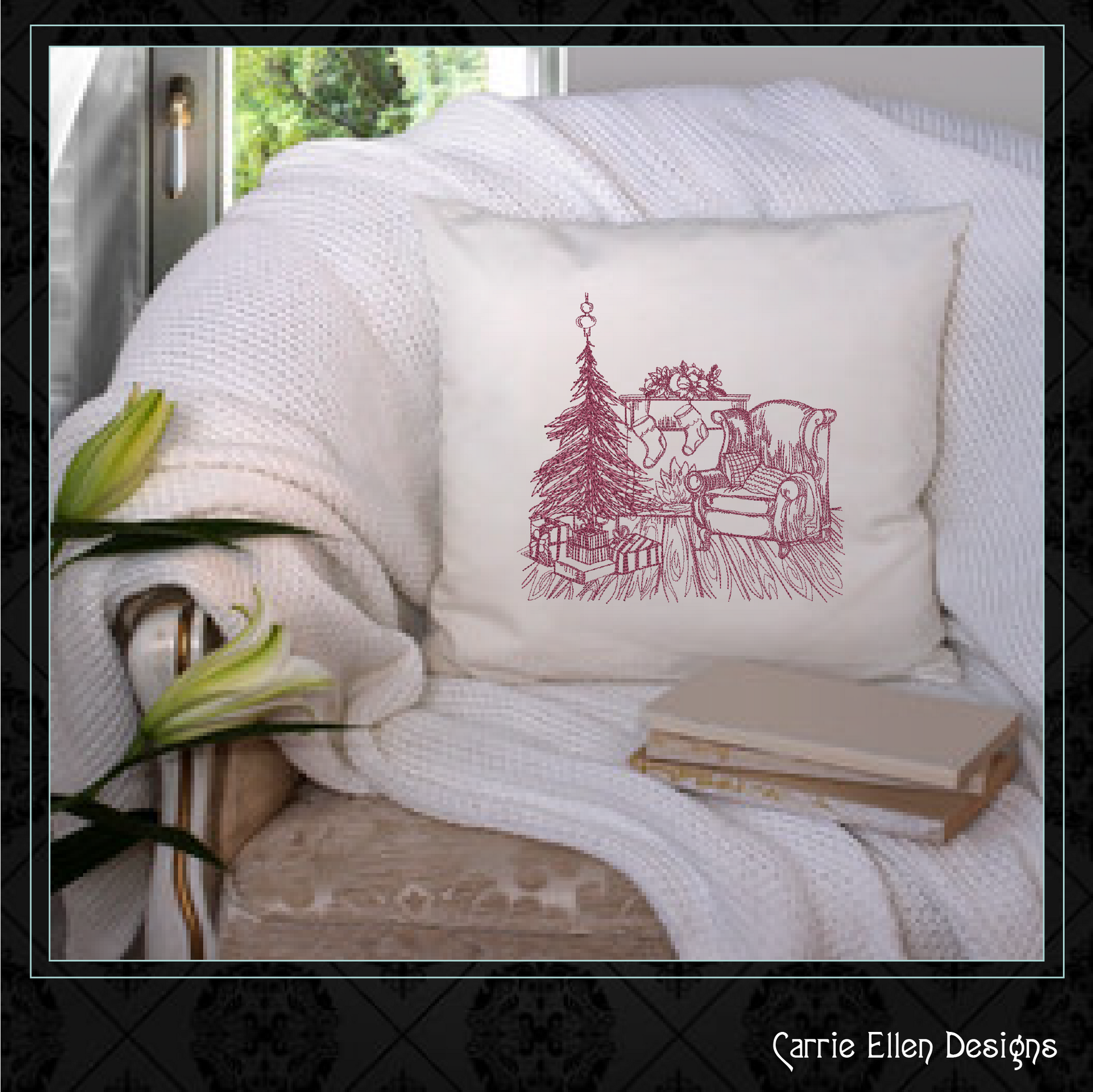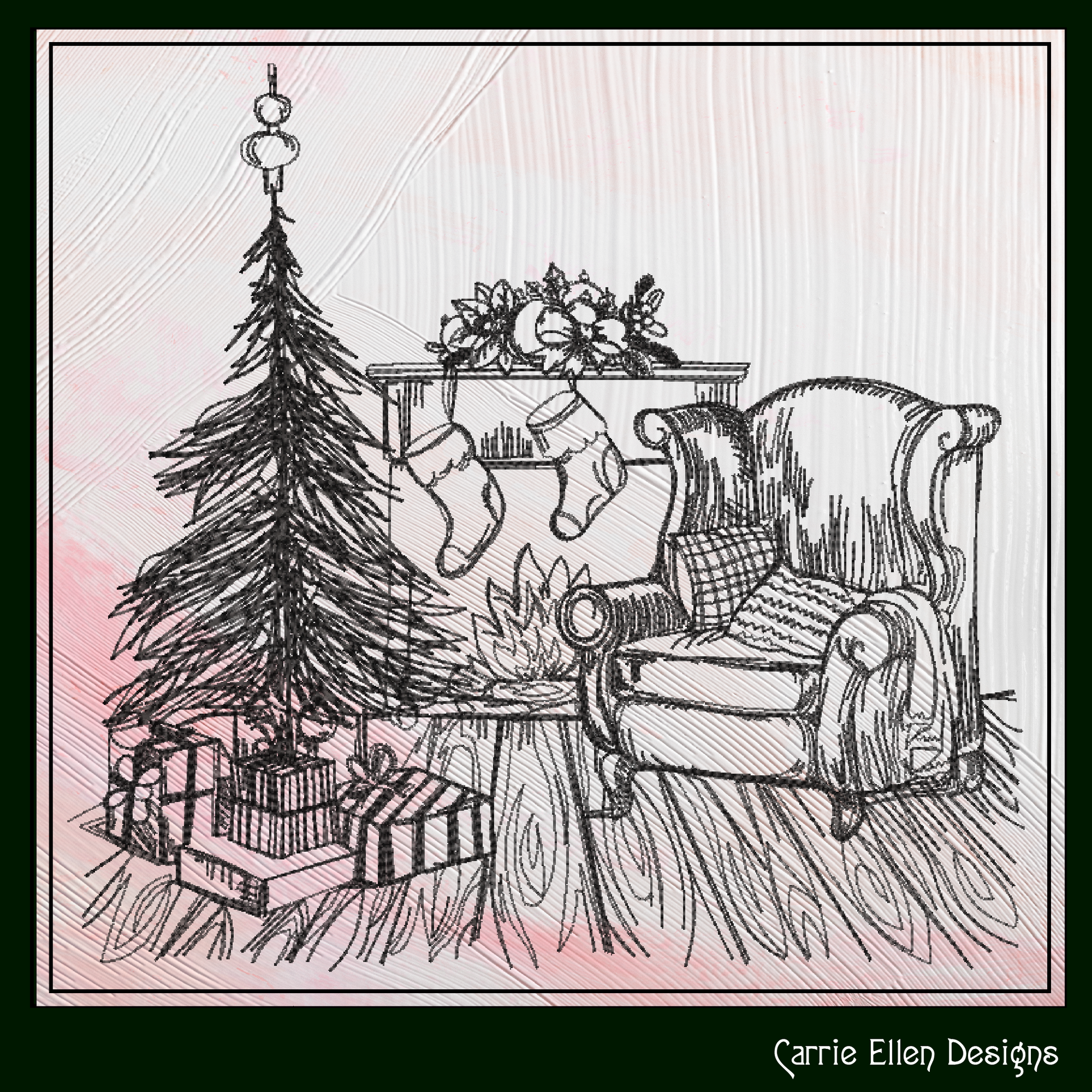 Capture the magic of Christmas morning with this charming Christmas Morning Sketch Machine Embroidery Design! Featuring a whimsical line art scene of a twinkling tree surrounded by gifts, stockings, and yuletide joy, this pattern brings all the warmth and wonder of the season to your holiday stitching.