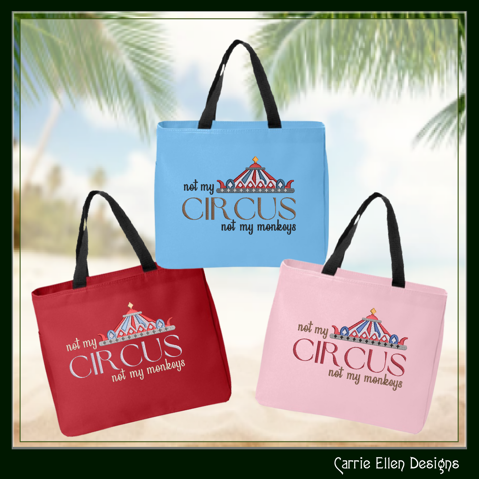 Not My Circus Not My Monkeys Machine Embroidery Saying, Circus Tent Sarcastic Quote, 6 Sizes (2969)
