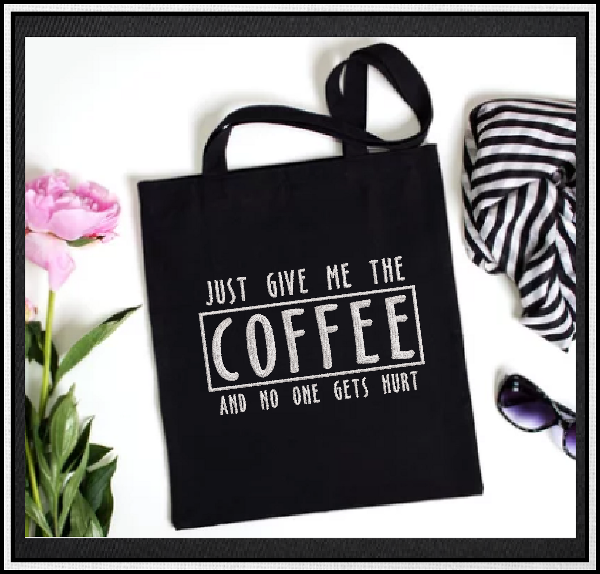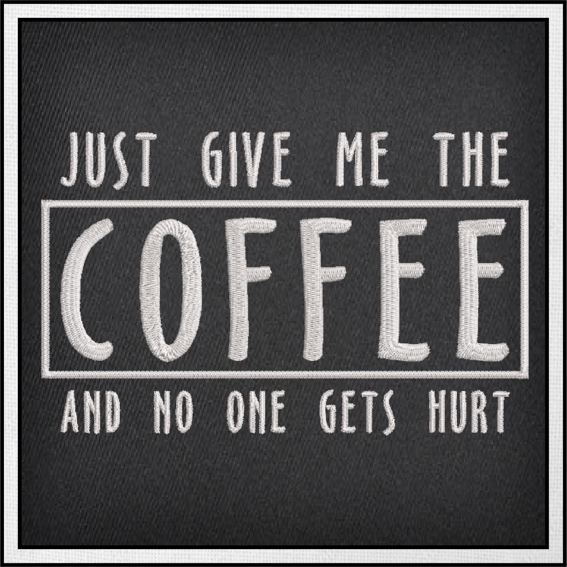 Just Give Me The Coffee Machine Embroidery Design – Coffee Lover Funny Quote – 8 Sizes (0396)