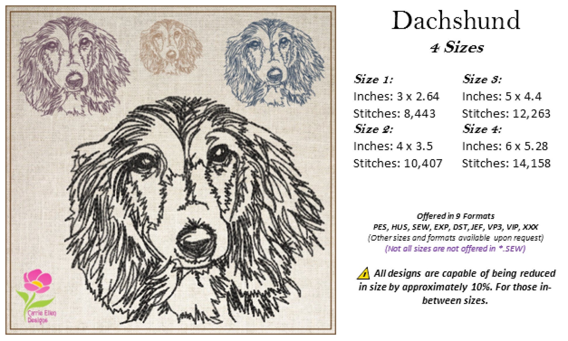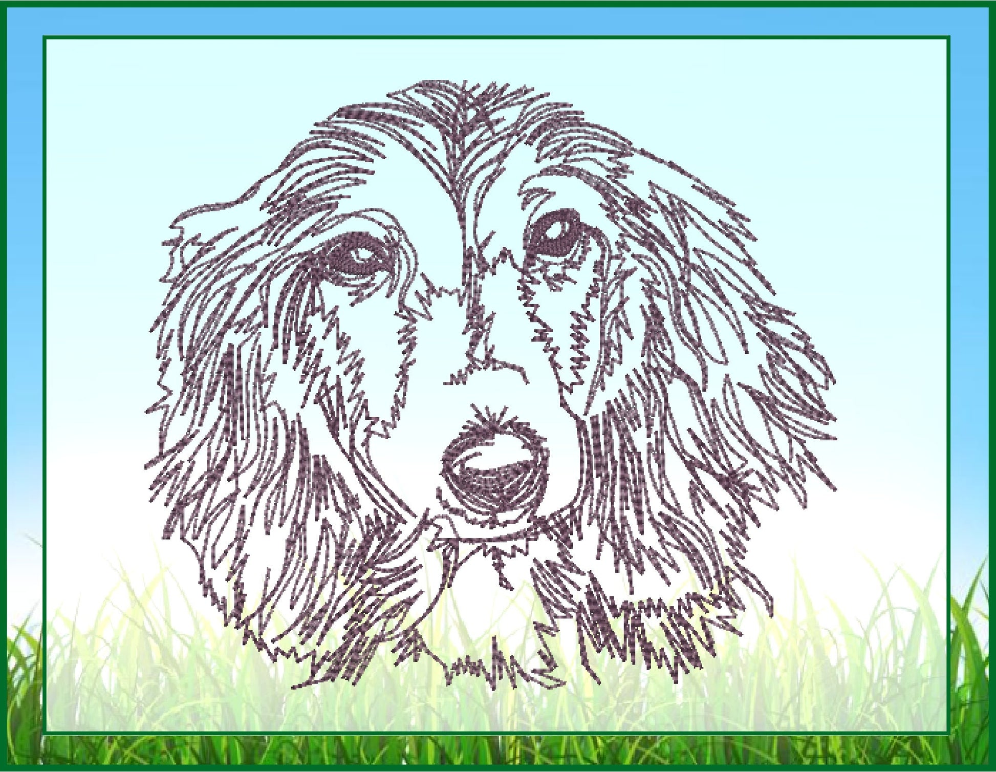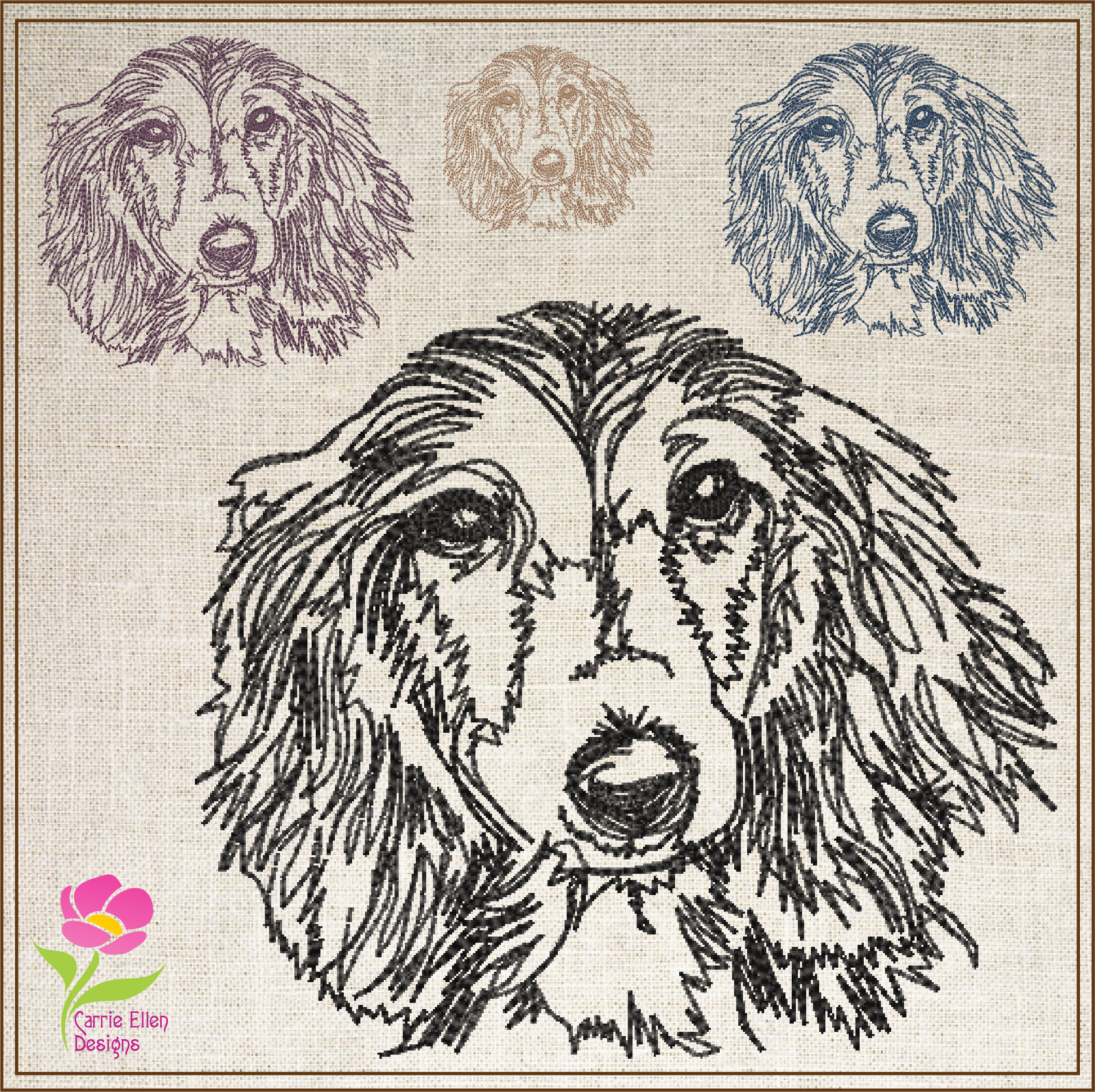 Dachshund Sketch Machine Embroidery Design – Long-Haired Dog Lover Line Art Pattern, 4 Sizes (0496)