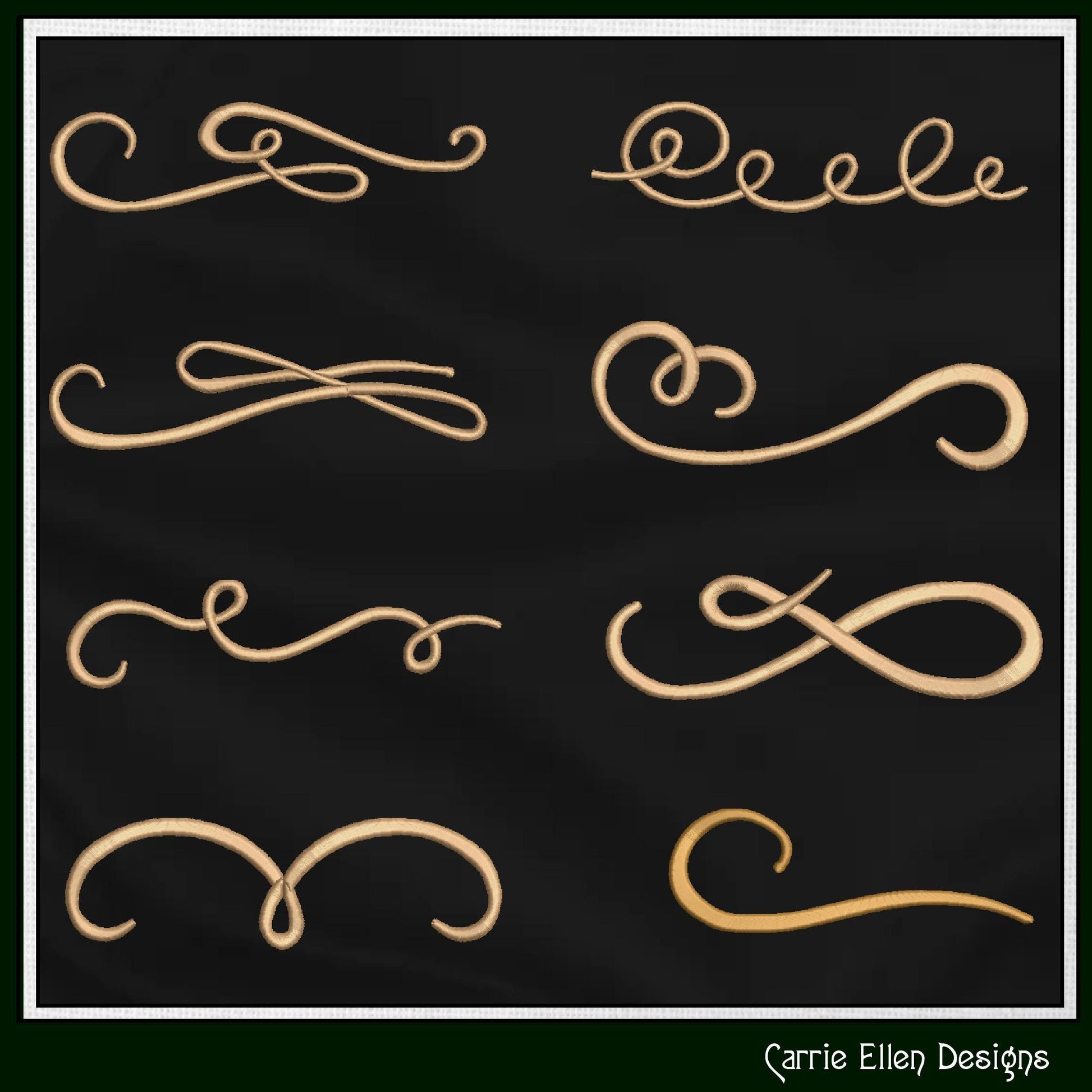 Calligraphy Flourish Design Elements, Machine Embroidery Designs, Swish and Swoosh, 25 designs 3 sizes each (3003)