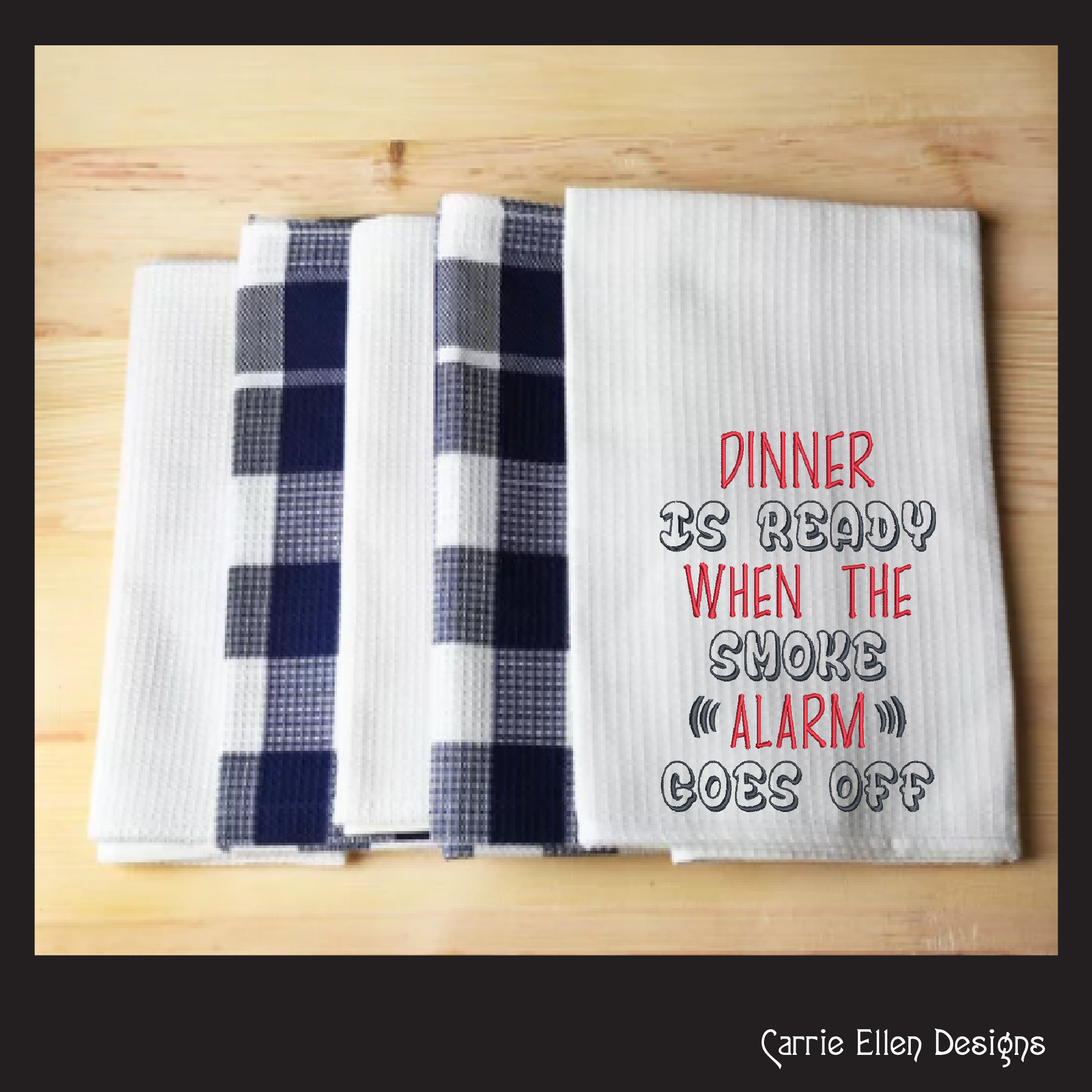 Dinner Is Ready When the Smoke Alarm Goes Off– Funny Kitchen Machine Embroidery Design Saying | 6 Sizes (2371)