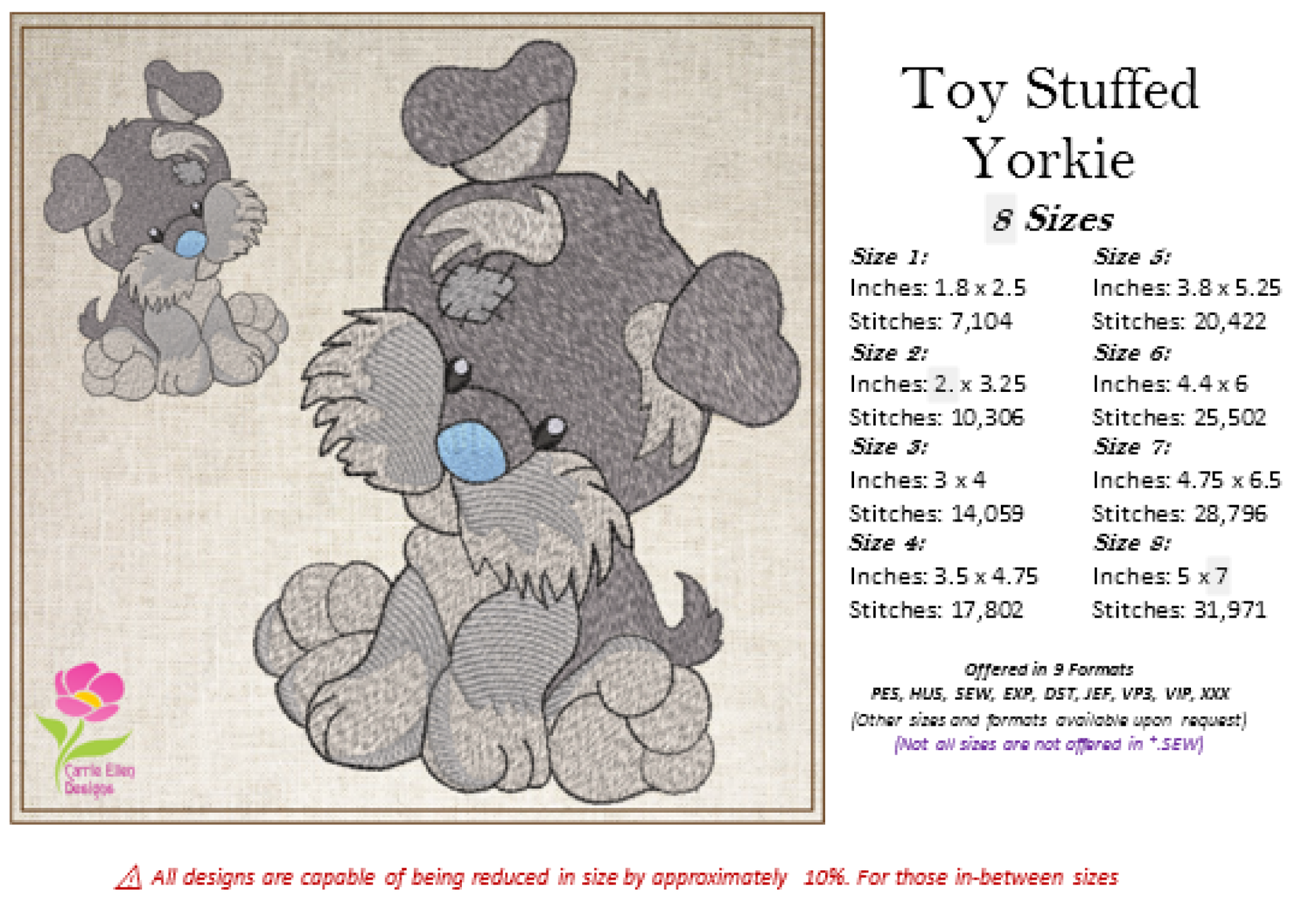 Toy Yorkie Machine Embroidery Design for Babies and Kids | Stuffed Yorkshire Terrier Plush Animal | Blue Nose Tatty Teddy Inspired | 8 Sizes (0786)