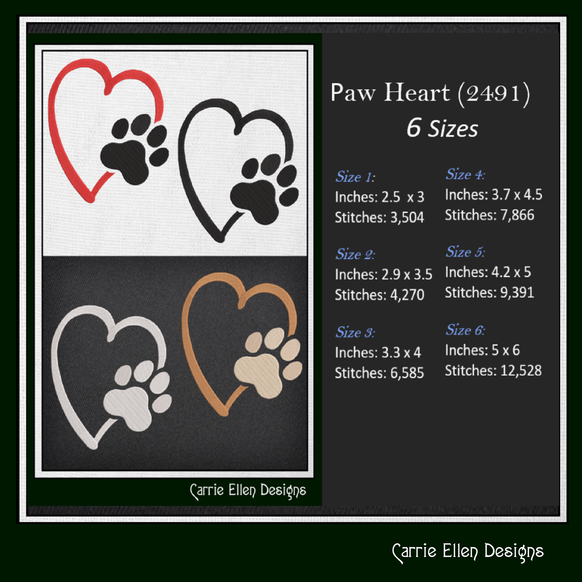 Dog Paw Machine Embroidery Design – Puppy & Dog Paw with Heart Pattern, Pet Lover Design, 6 Sizes (2491)