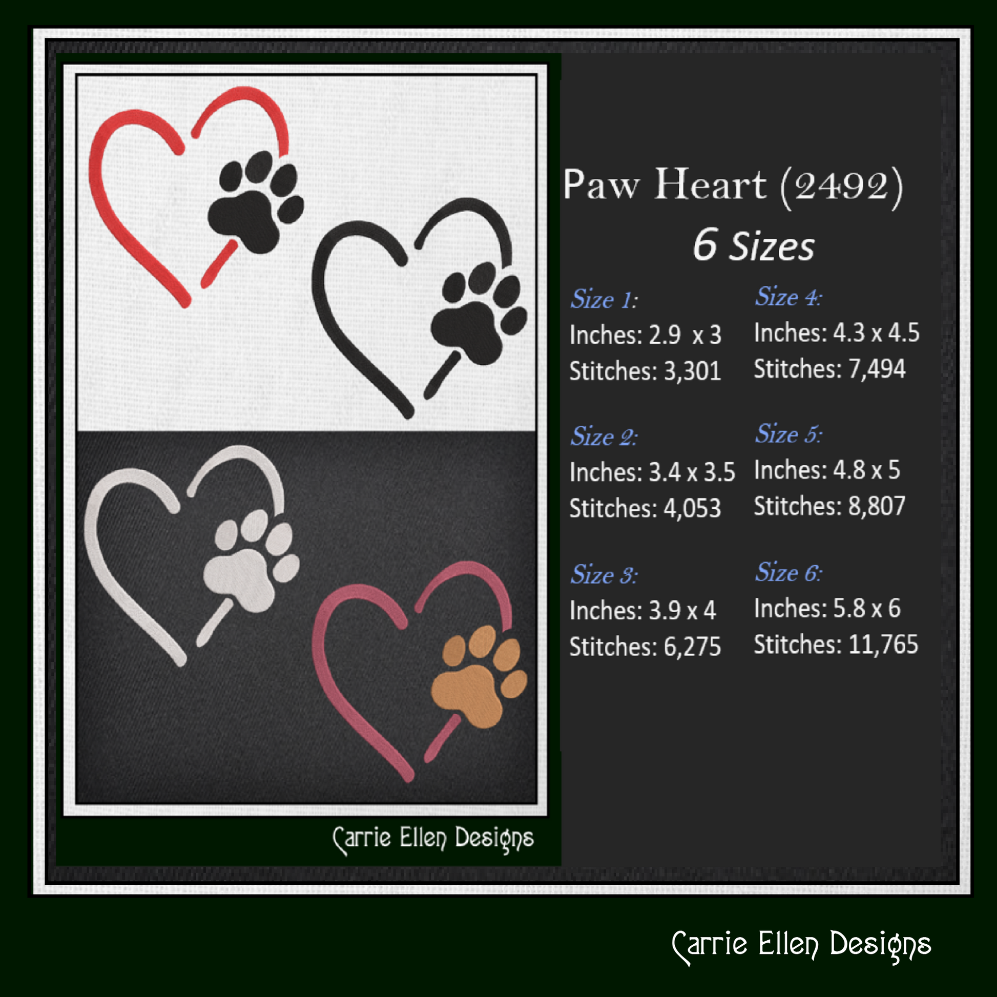 Dog Paw Machine Embroidery Design – Puppy & Dog Paw with Heart Pattern, Pet Lover Design, 6 Sizes (2492)