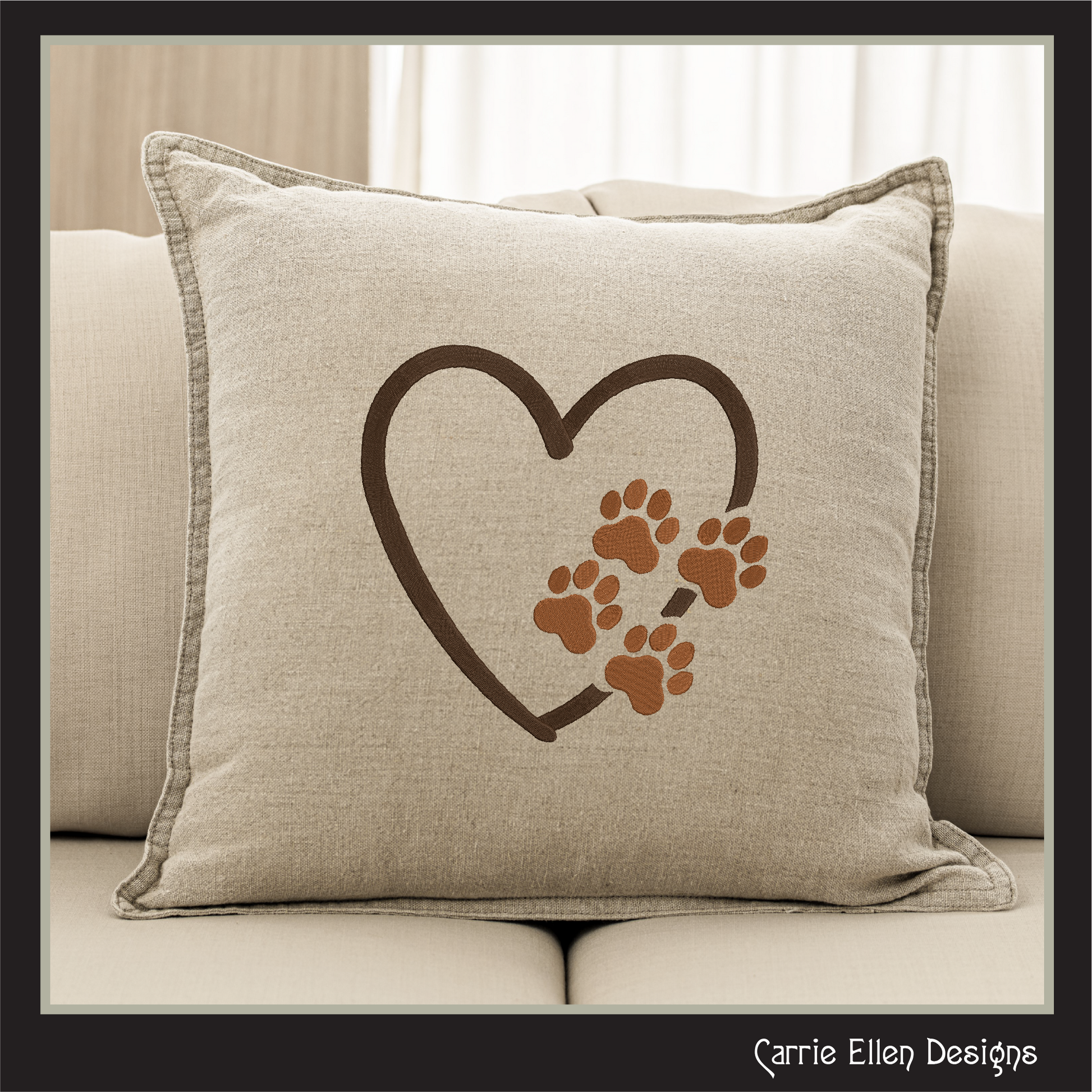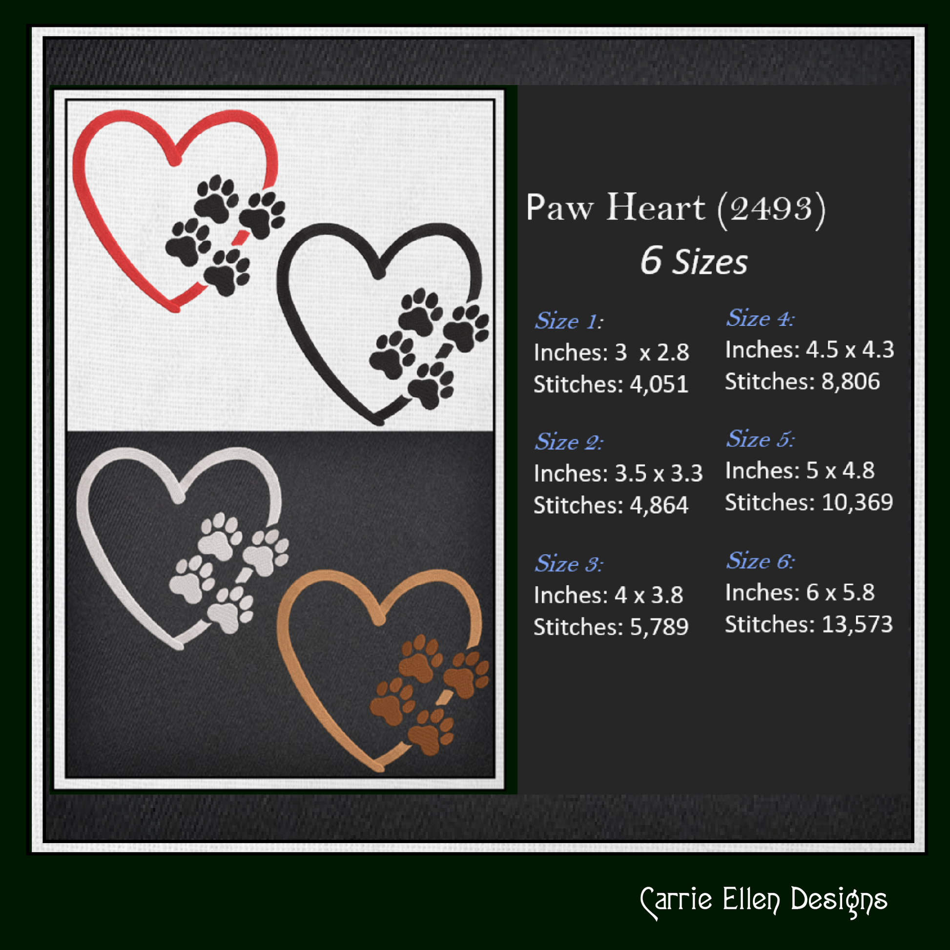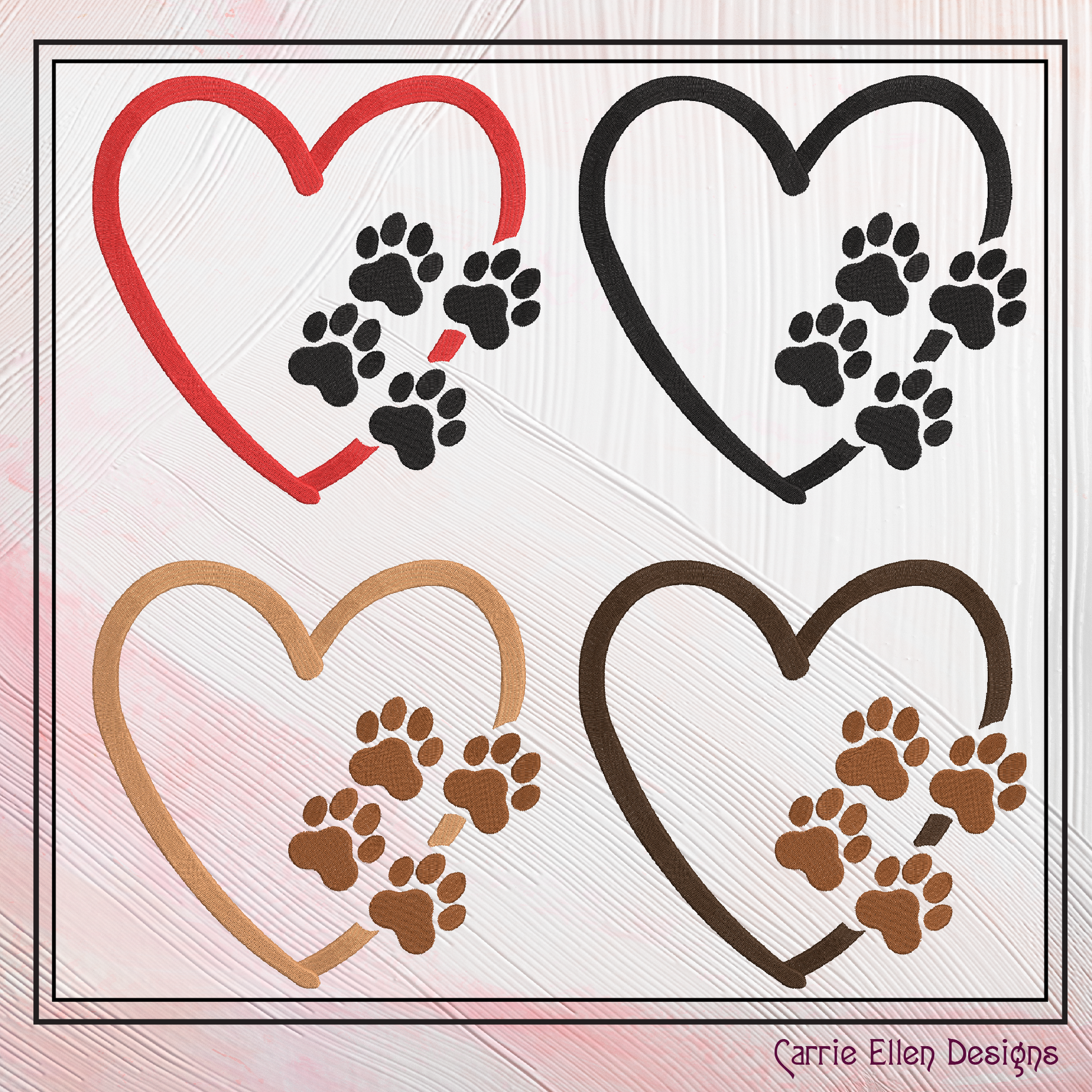 Dog Paw Machine Embroidery Design – Puppy & Dog Paw with Heart Pattern, Pet Lover Design, 6 Sizes (2493)