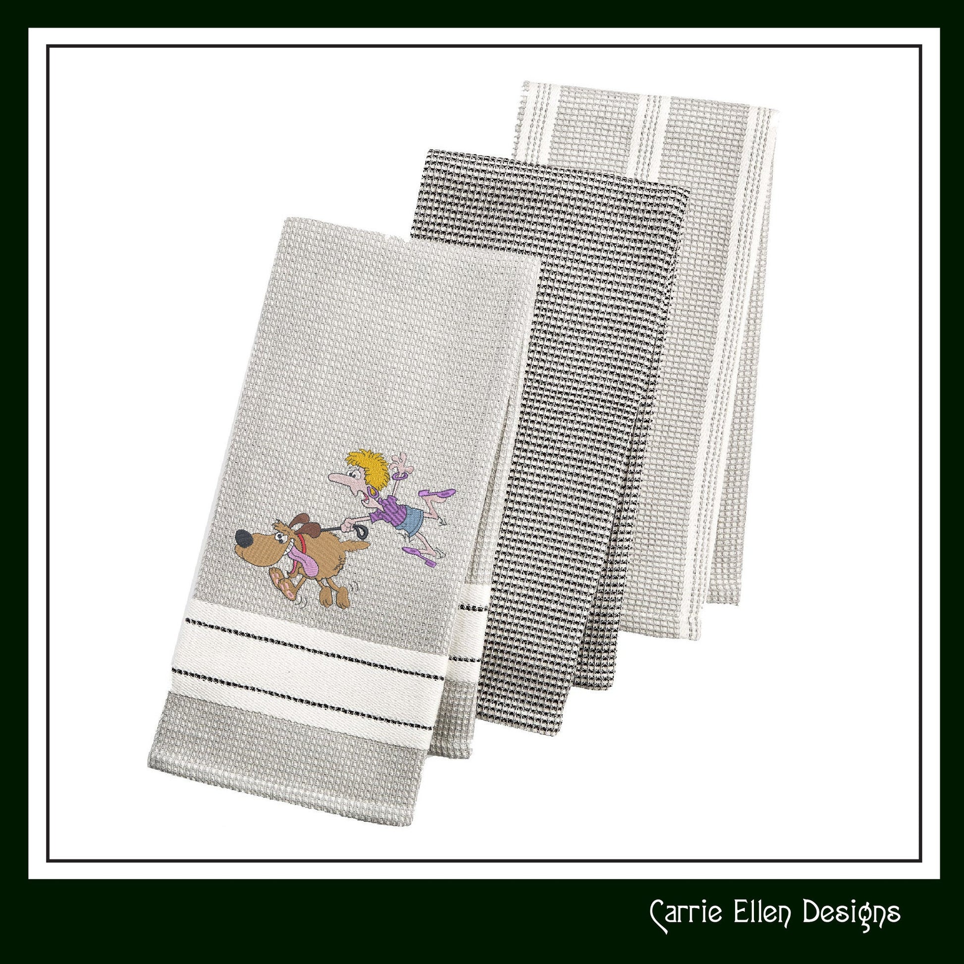 Lady Being Pulled By Her Dog Machine Embroidery Design – Funny Dog Lover Cartoon, 6 Sizes (1062)
