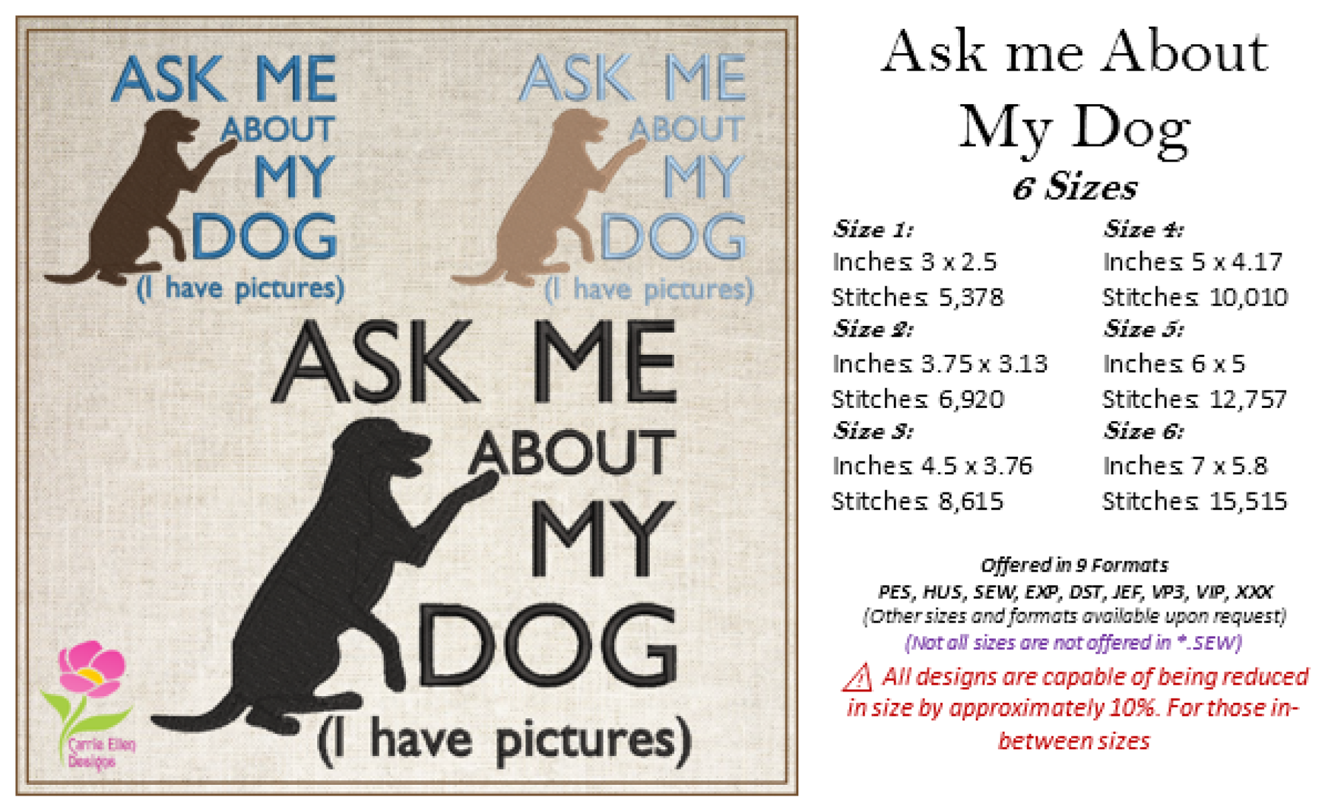 Pet Dog Machine Embroidery Design – Ask Me About My Dachshund Quote, Funny Dog Saying Pattern, 6 Sizes (0583)