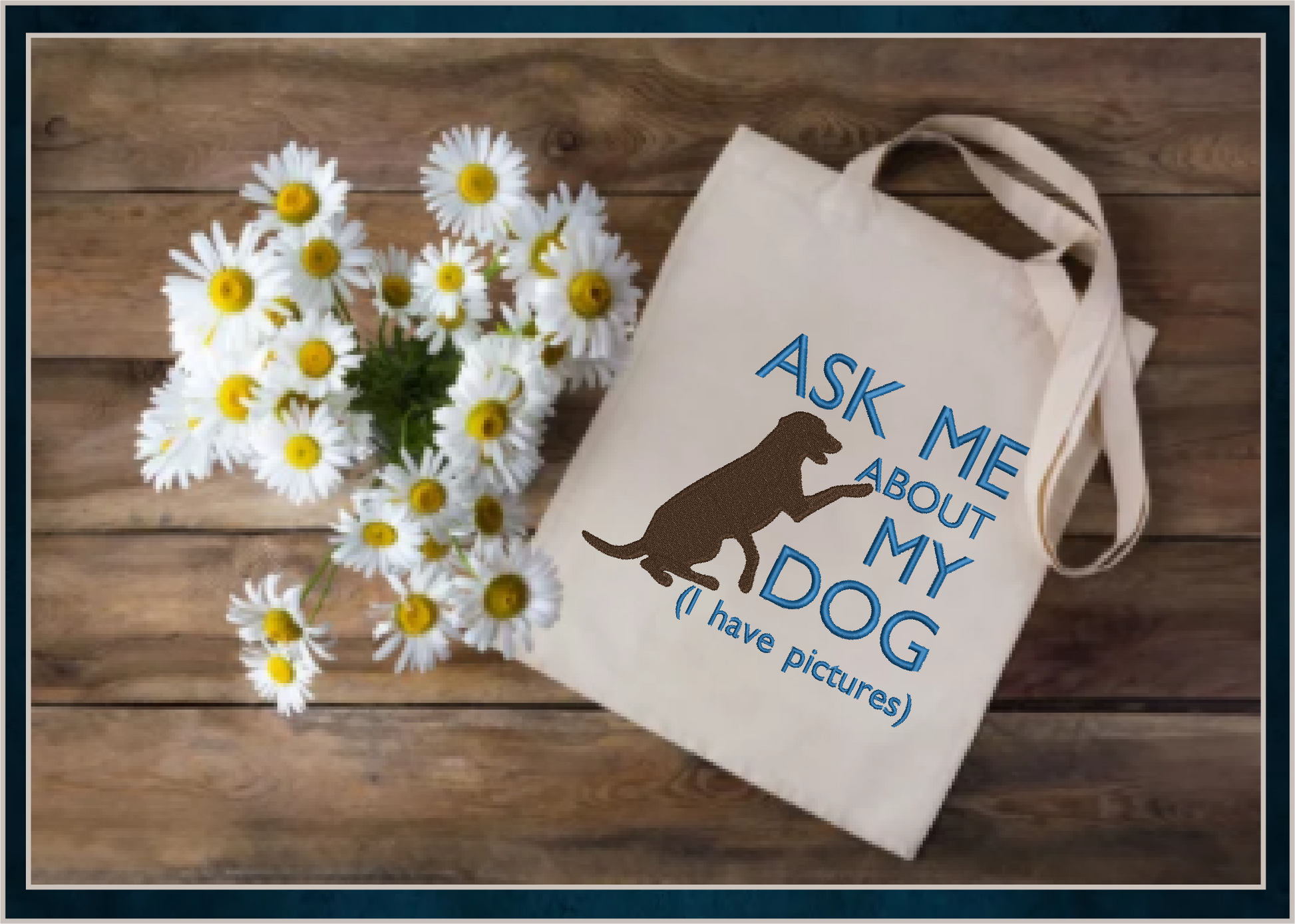 This lighthearted design works beautifully on tote bags, tees, sweatshirts, aprons, or even on your dog’s accessories. Whether you’re heading to the dog park or crafting handmade gifts, this design adds personality and charm.