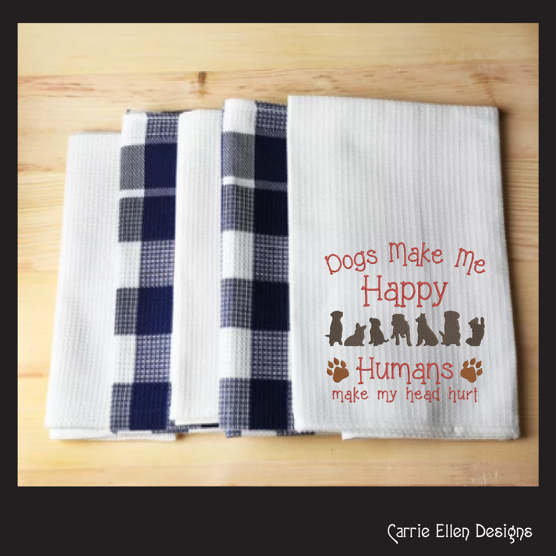 Dogs Make Me Happy Machine Embroidery Design – Funny Dog Saying – Humans Hurt My Head – 6 Sizes (1245)