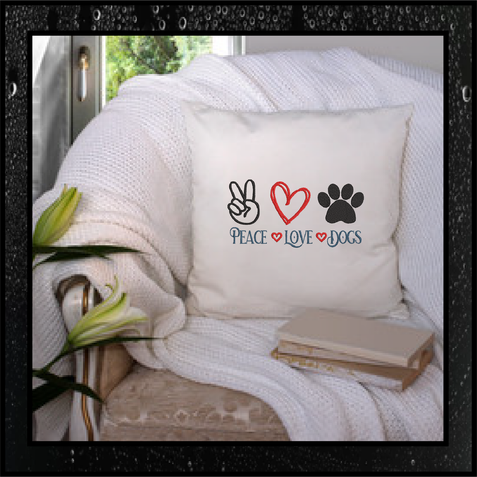 Celebrate your love for furry friends with this Peace Love and Dogs Machine Embroidery Design! This heartwarming and stylish design is perfect for any dog lover. Great for stitching onto tote bags, sweatshirts, pillows, or gifts for pet parents, this design brings together good vibes and wagging tails.