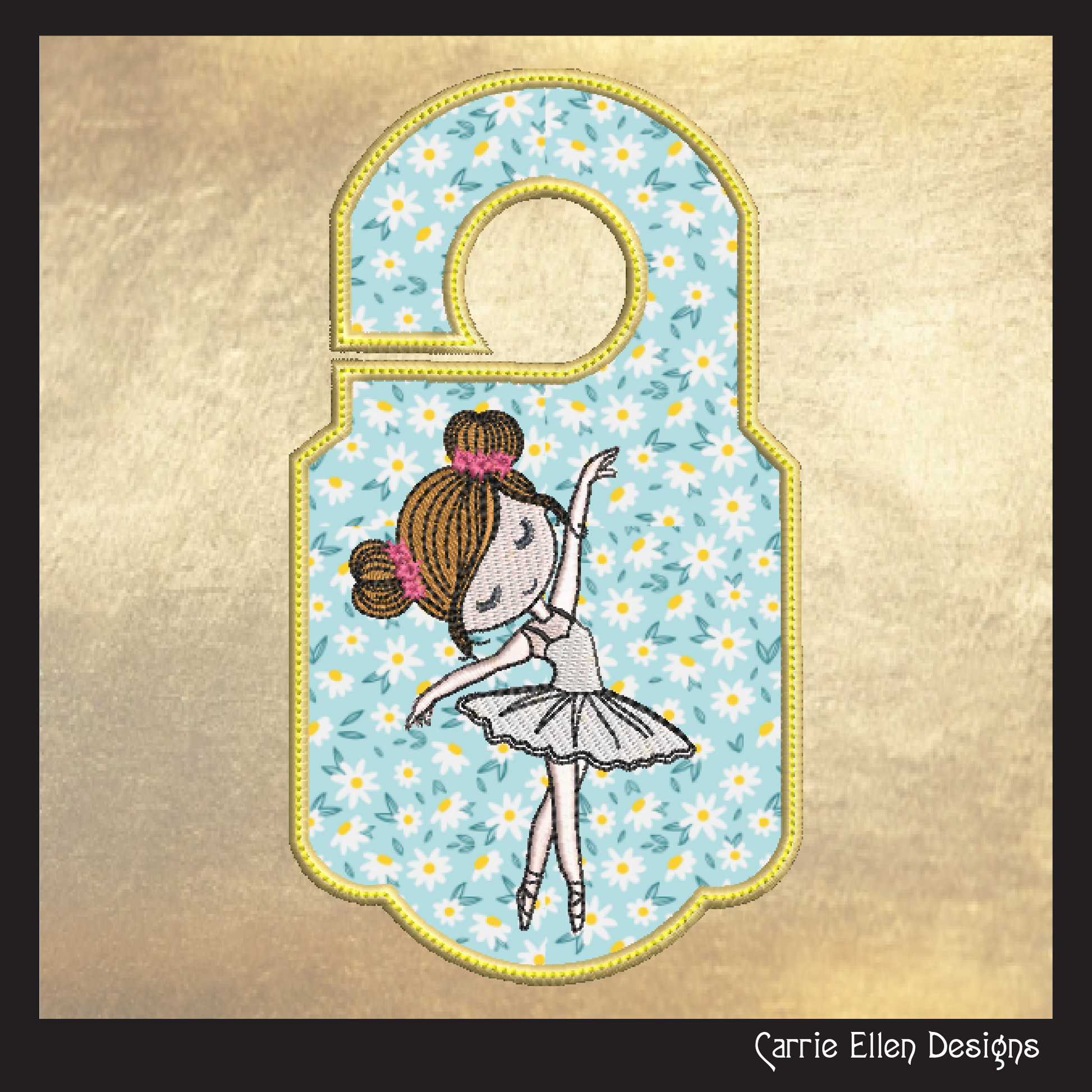Ballerina ITH Door Knob Hanger Machine Embroidery Design, Dancer In The Hoop Door Sign Embroidery Project (1423)