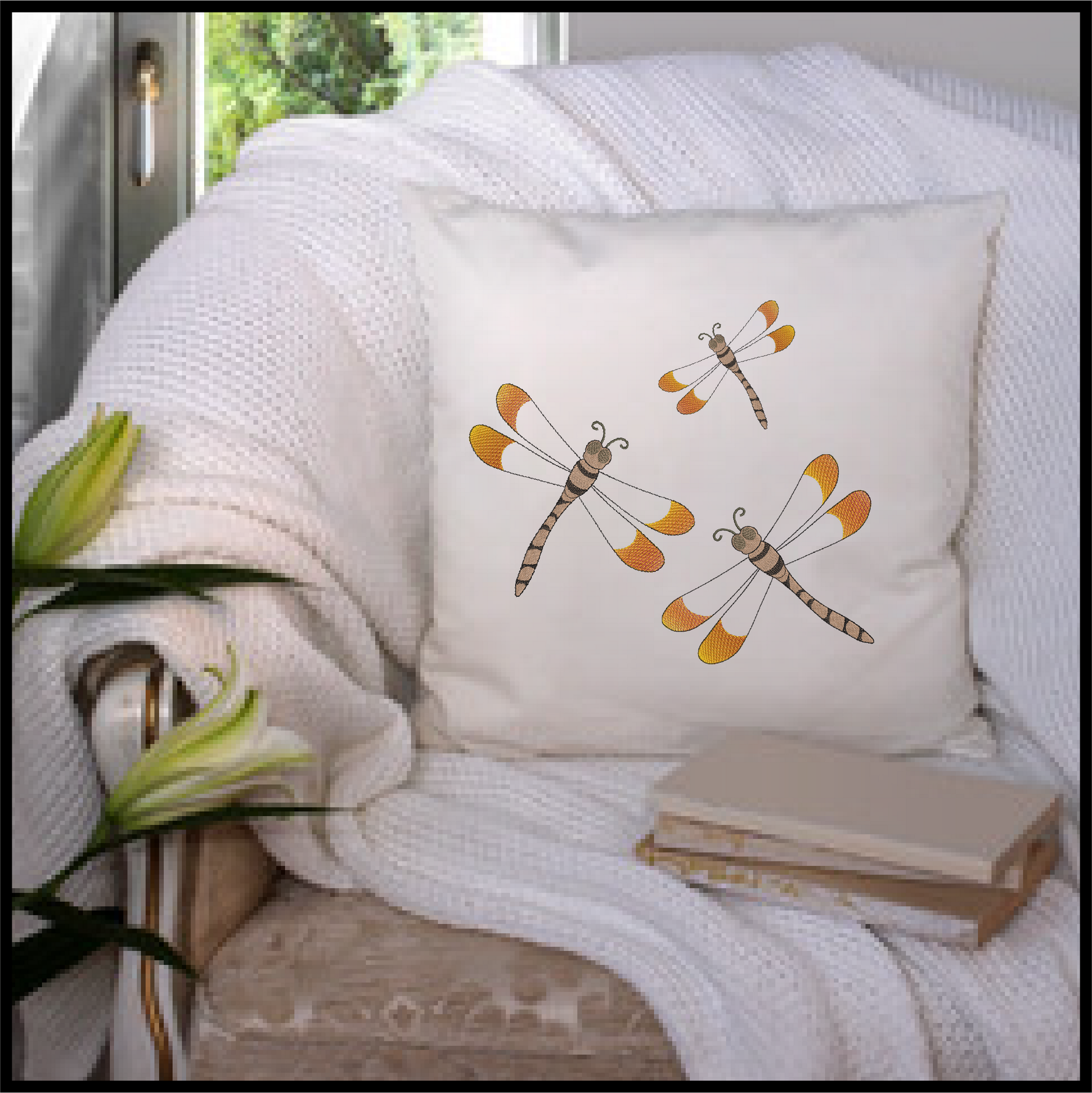 Dragonfly Machine Embroidery Design | Insect Embroidery Pattern | Garden Dragonflies & Bees Embroidery | 6 Sizes (0546) (Copy)