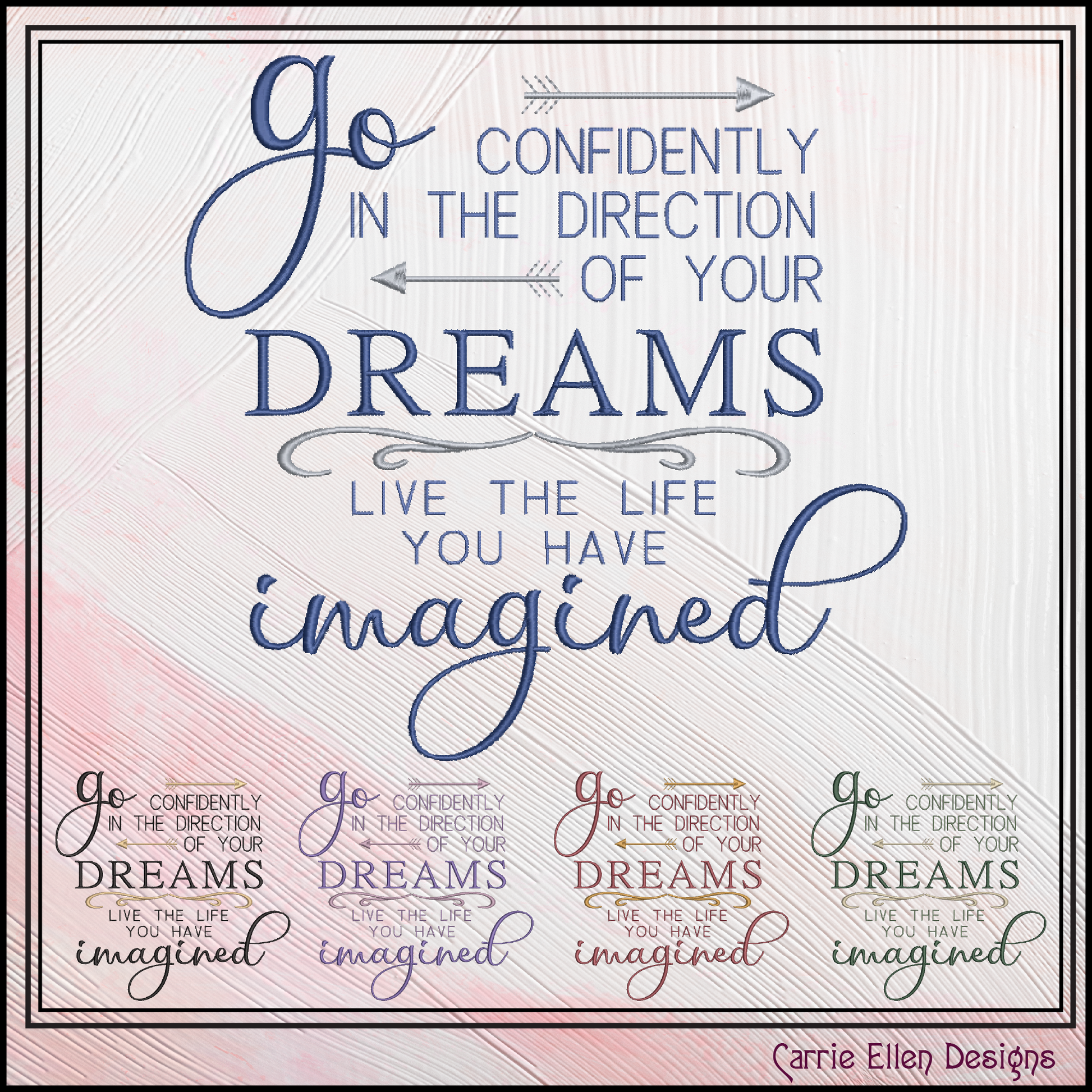 Go Confidently in the Direction of Your Dreams Machine Embroidery Design – Inspirational Motivational Quote – 6 Sizes (3343)