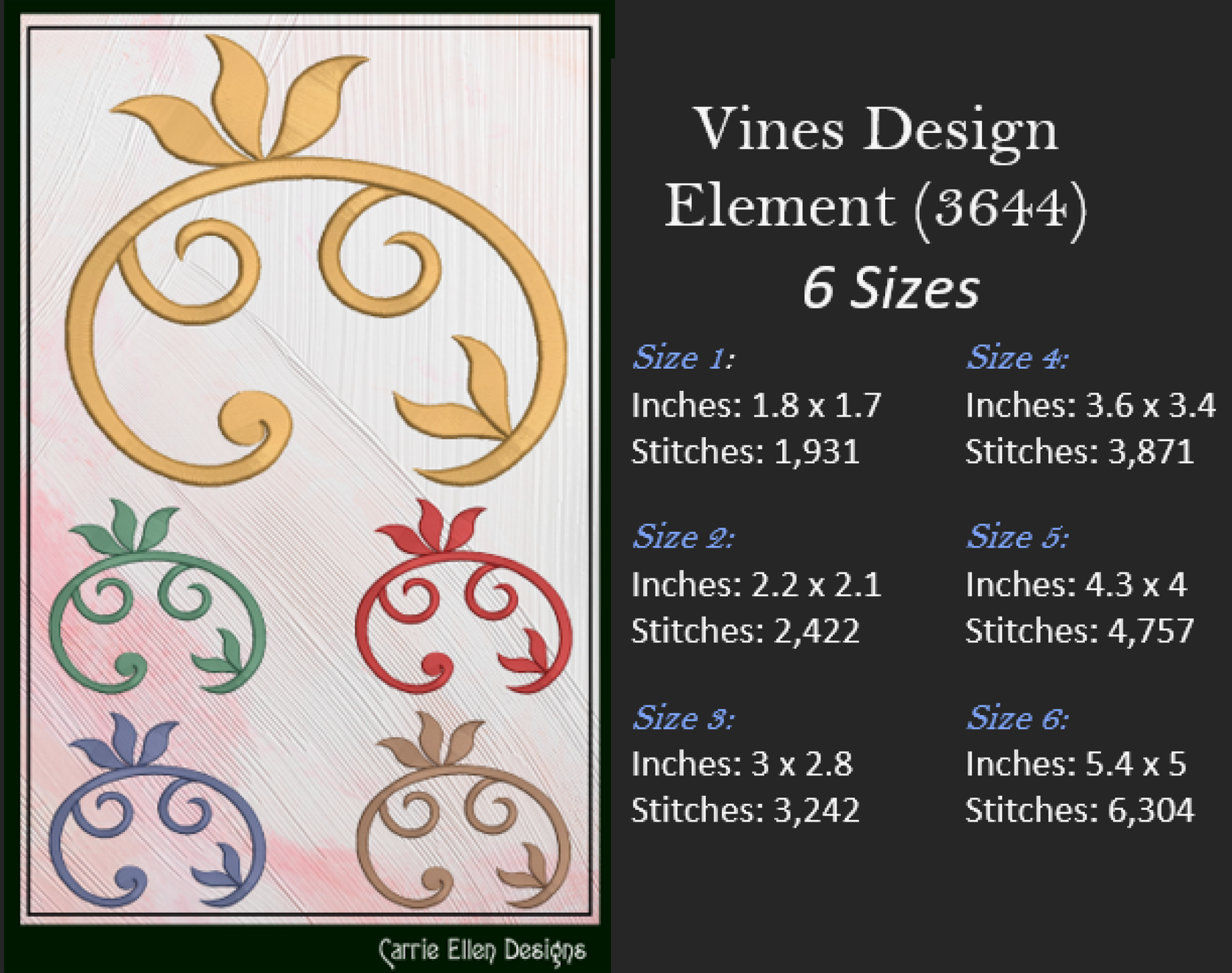 Vine Design Elements Machine Embroidery Design Bundle – 9 Individual Patterns, 6 Sizes Each (3646)